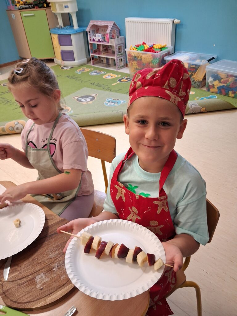 „Skąd sie biorą produkty ekologiczne?” pogadanka połączona z wykonaniem owocowych smakołyków – gr. VII