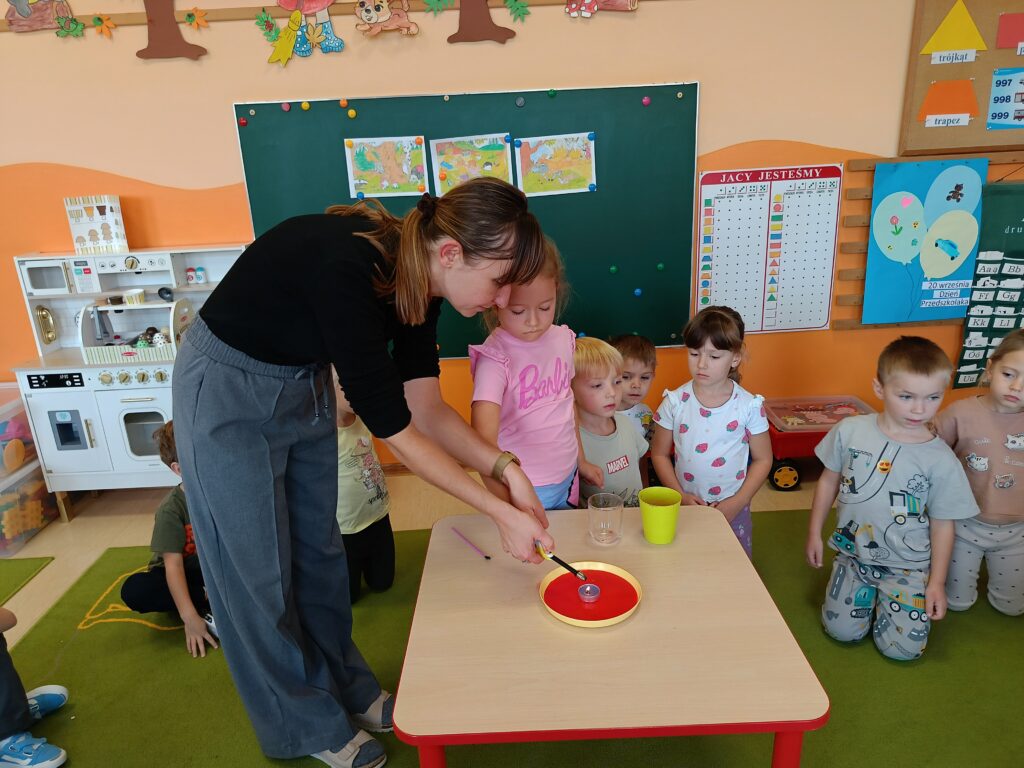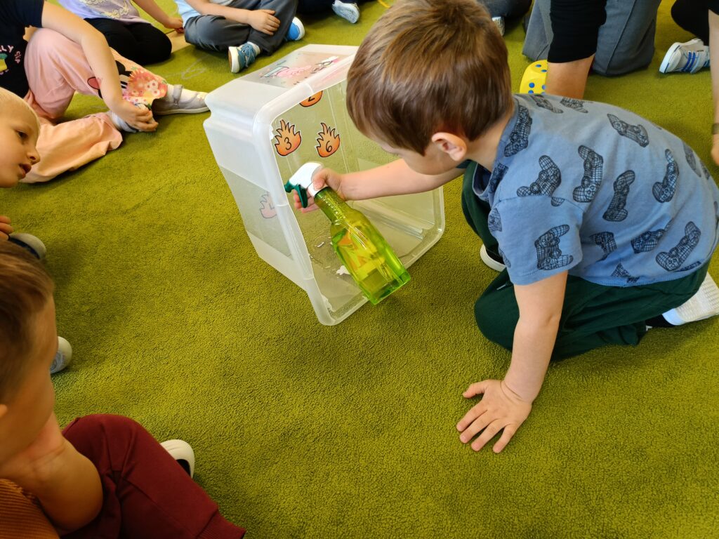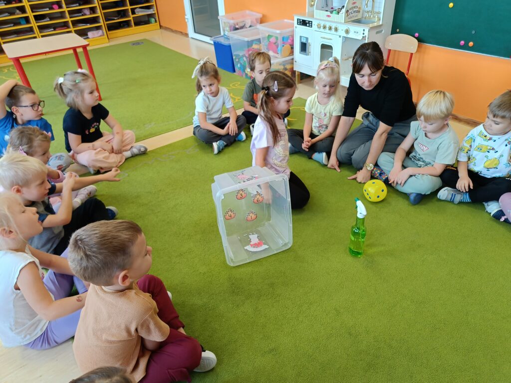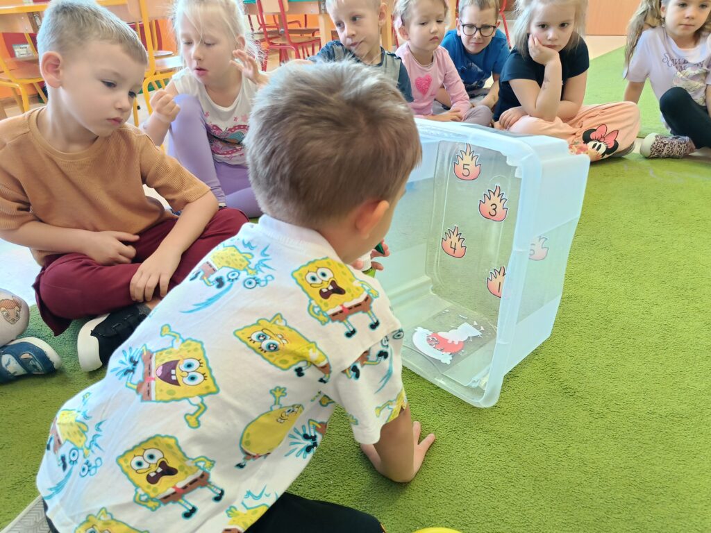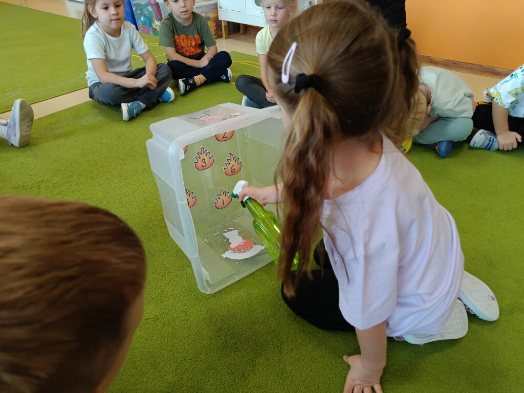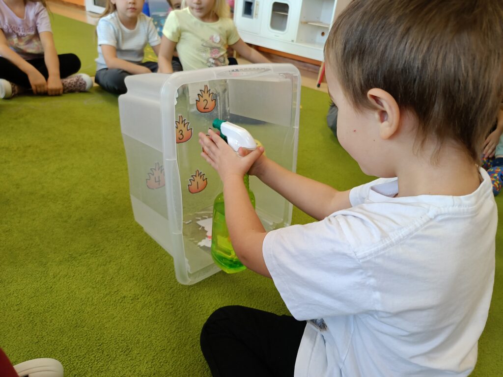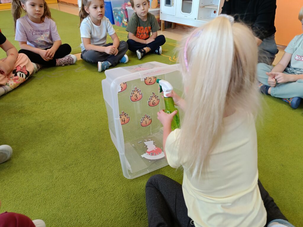 W tym tygodniu tematyką przewodnią w naszej grupie są żywioły. Dziś poprzez doświadczenia dzieci zdobyły wiedzę dotyczącą ognia. Tworzyliśmy różne eksperymenty z nim związane. Przedszkolaki dowiedziały się czym jest żywioł ogień i dlaczego może być przydatny, ale również niebezpieczny.