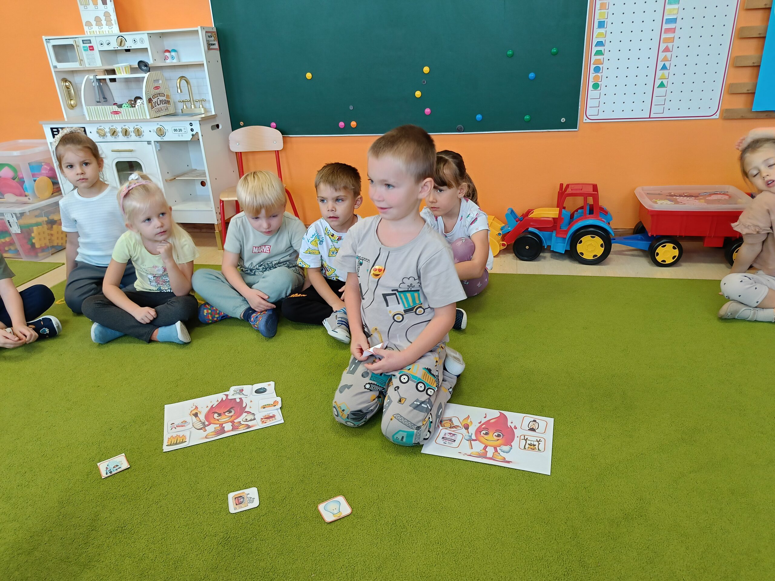 W tym tygodniu tematyką przewodnią w naszej grupie są żywioły. Dziś poprzez doświadczenia dzieci zdobyły wiedzę dotyczącą ognia. Tworzyliśmy różne eksperymenty z nim związane. Przedszkolaki dowiedziały się czym jest żywioł ogień i dlaczego może być przydatny, ale również niebezpieczny.