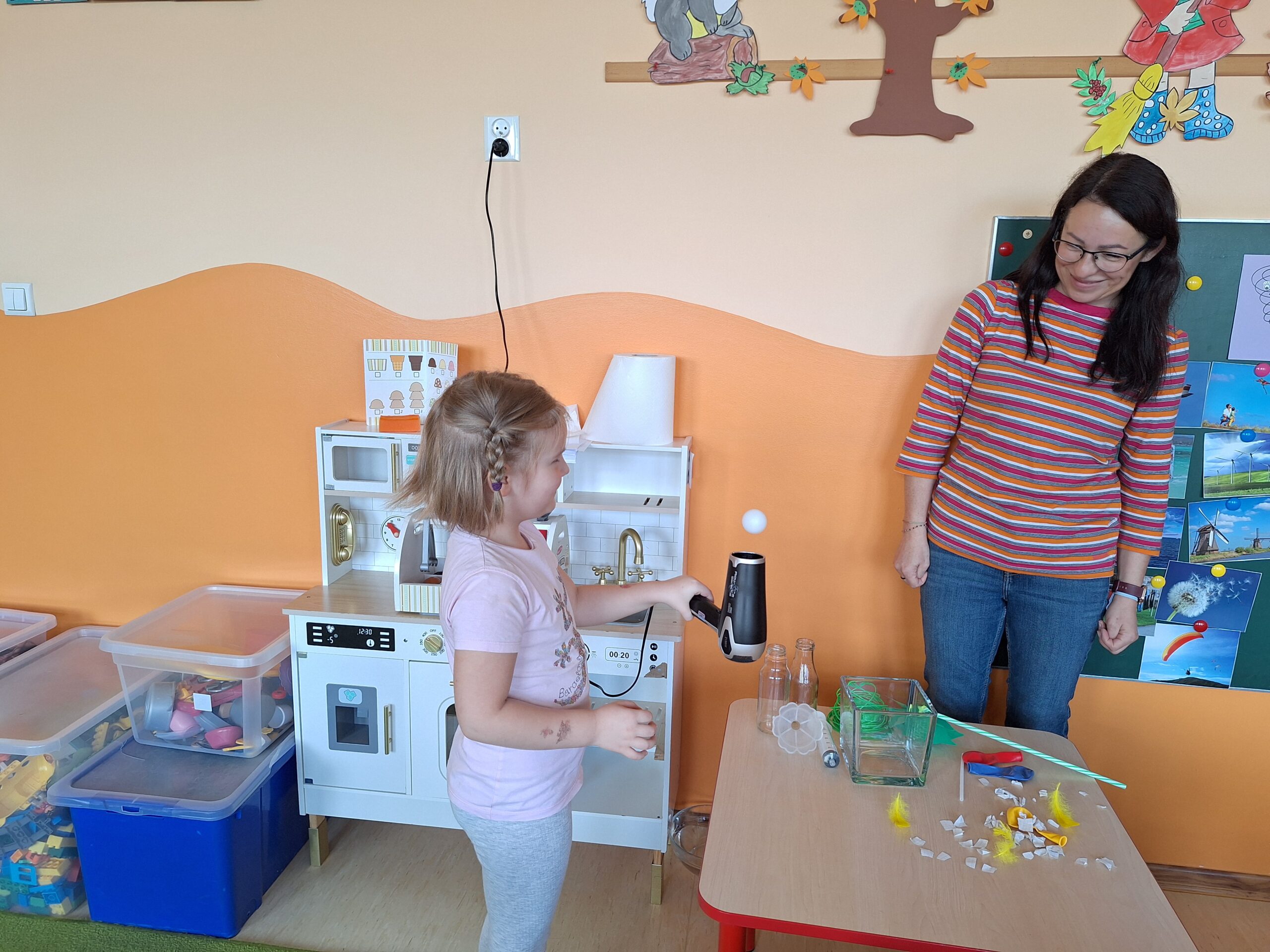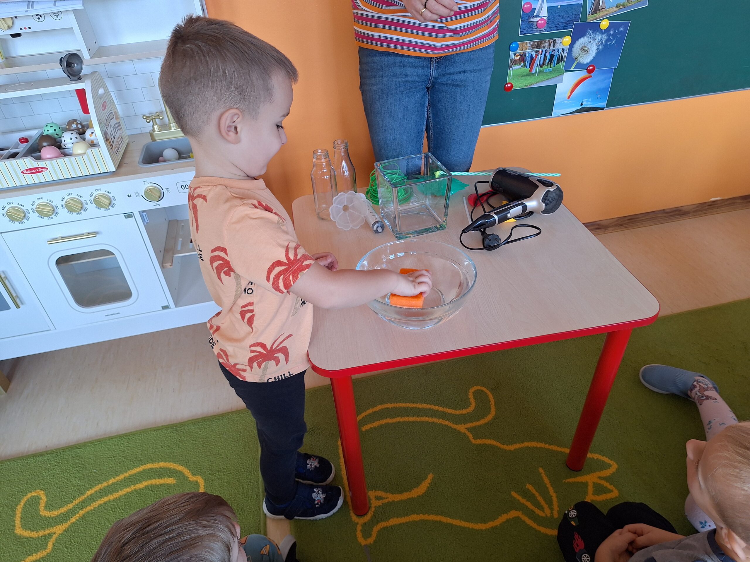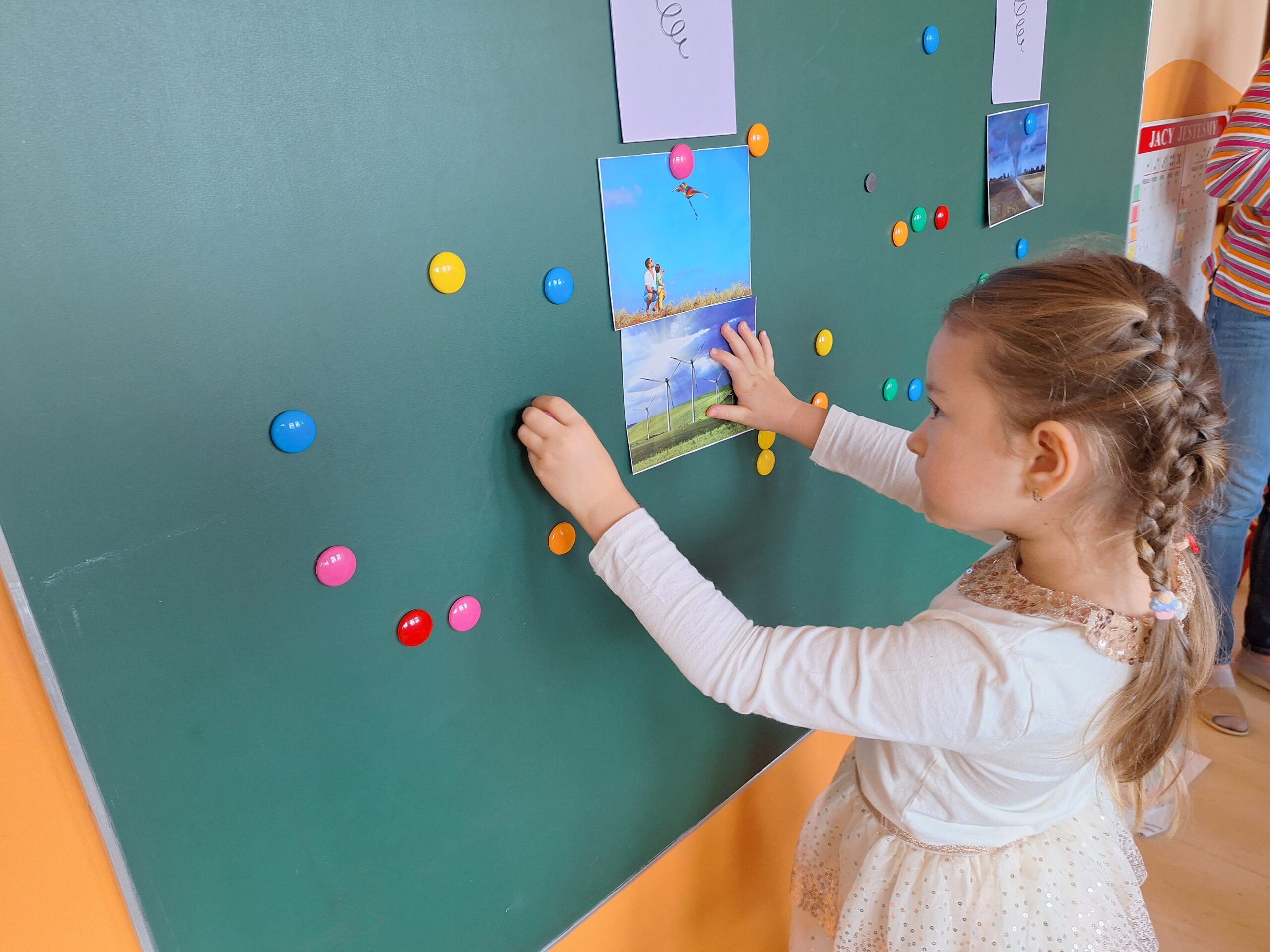 Dzieci poznały żywioł – powietrze. W trakcie zajęć wykonywały różnorodne eksperymenty, dzięki którym mogły zobaczyć, jak powietrze działa w praktyce. Dowiedziały się, że wiatr może być pożyteczny, na przykład wytwarzać energię lub poruszać różne przedmioty, ale także niebezpieczny, gdy staje się bardzo silny. Dzięki tym doświadczeniom dzieci lepiej zrozumiały właściwości powietrza i jego rolę w przyrodzie.