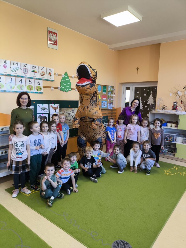 26 lutego w naszym przedszkolu obchodziliśmy Dzień Dinozaura. Z tej okazji dzieci odwiedził specjalny gość. Serdeczne podziękowania dla Pani Beaty Kozioł za aktywne włączenie się w to wydarzenie i występ w stroju dinozaura. Dziękujemy za stworzenie niezapomnianej atmosfery.