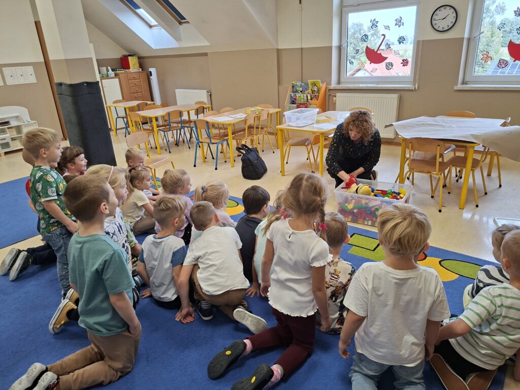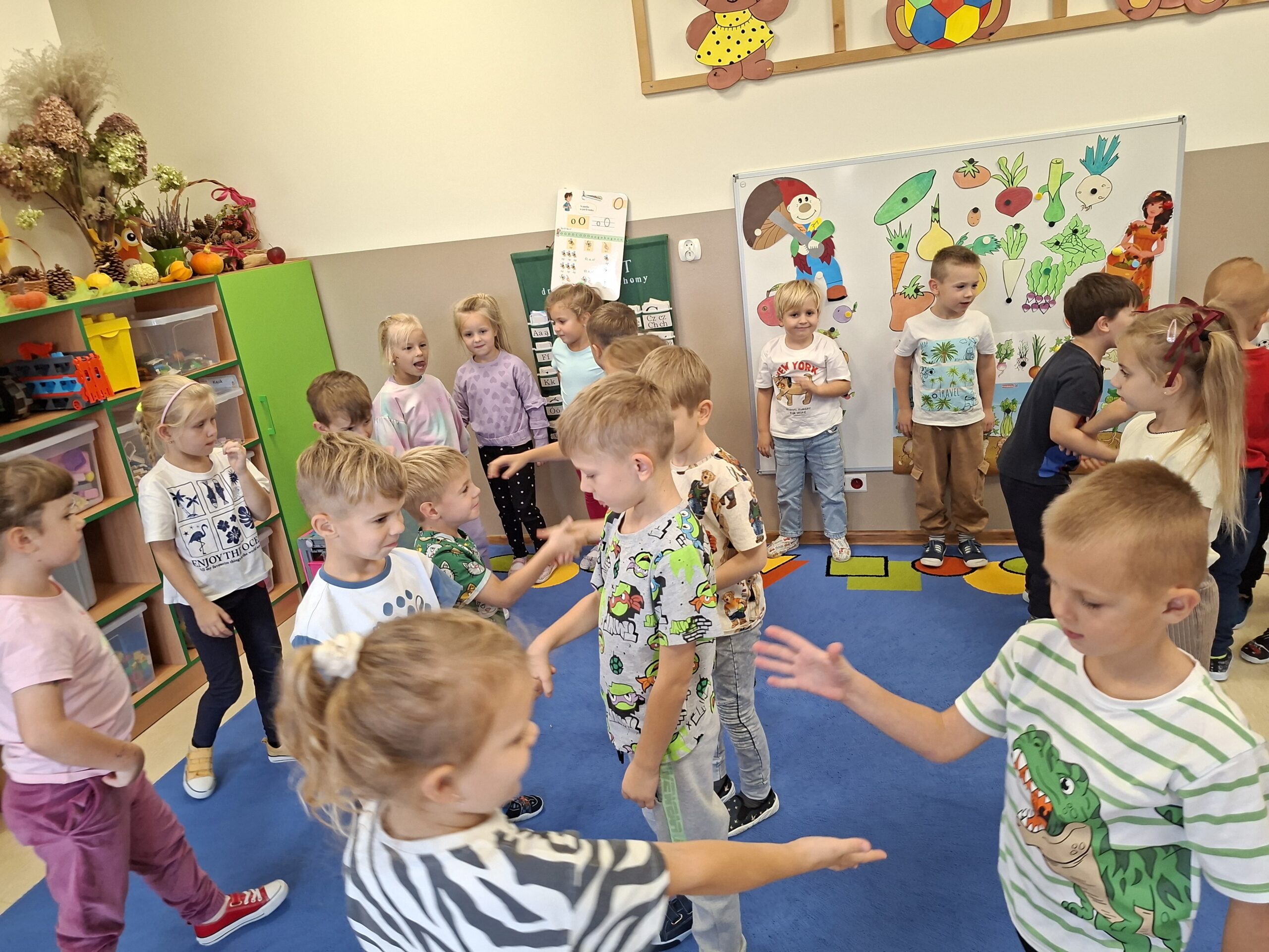 Dzieci z wielkim zaangażowaniem brały udział w zabawach integracyjnych, scenkach i zrozumiały,że bycie dobrym kolegą to nie tylko słowa, ale przede wszystkim codzienne gesty życzliwości i troski o innych. Starszaki udowodniły, że potrafią współpracować, wspierać się i tworzyć zgraną przedszkolną drużynę!