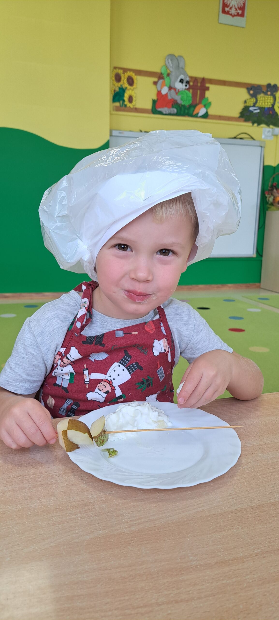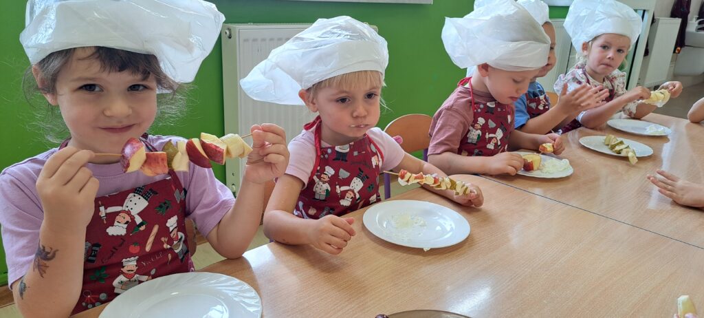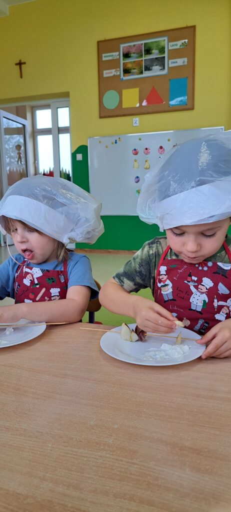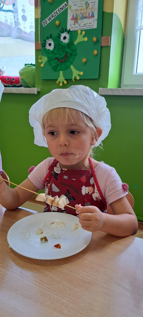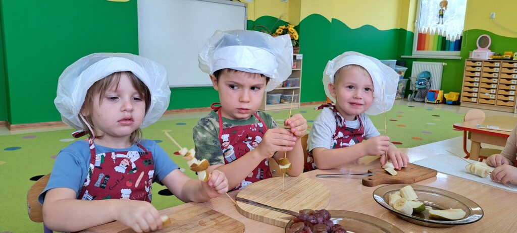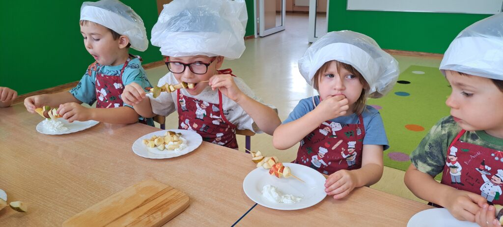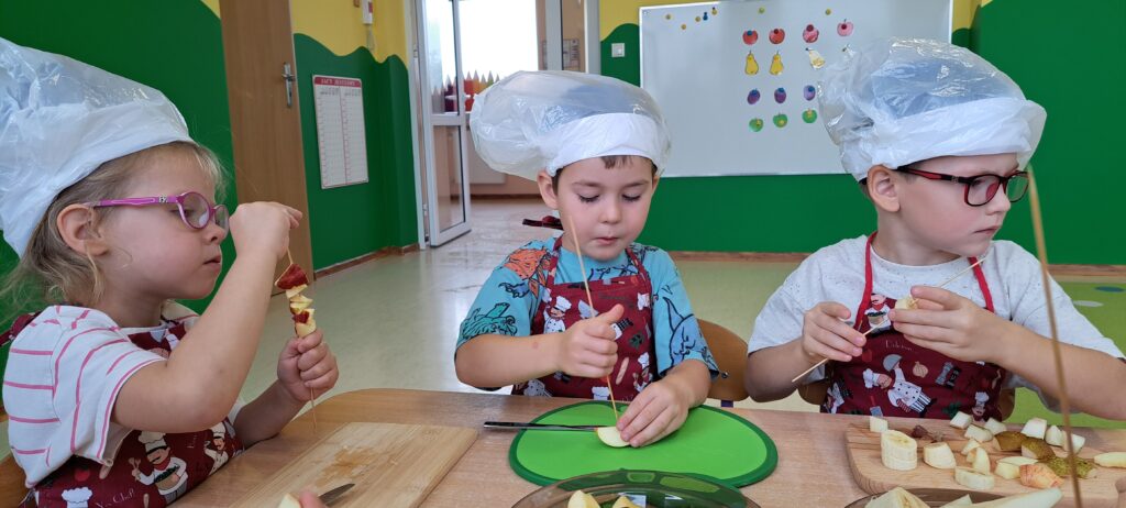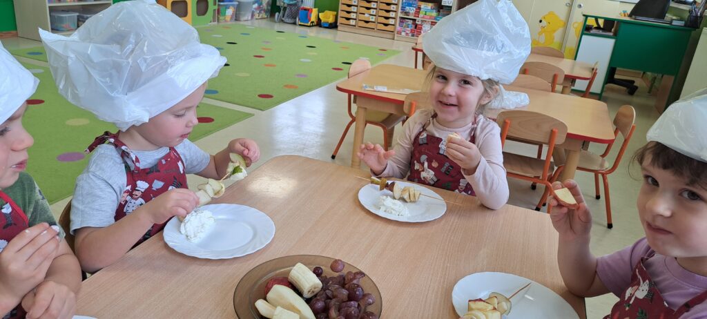 Owocowe szaszłyki w gr. IV zgodnie z projektem „Skąd się biorą produkty ekologiczne?”