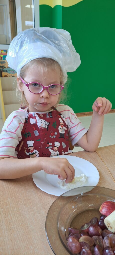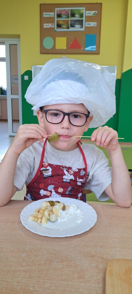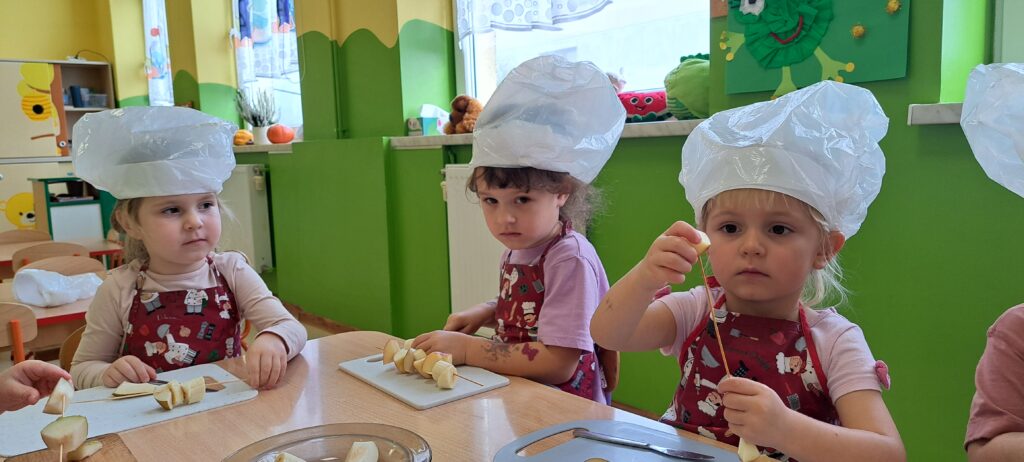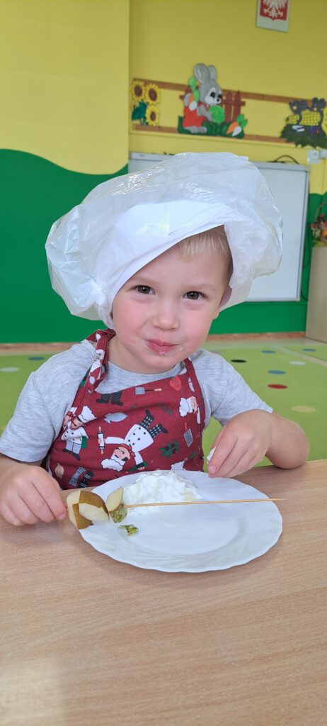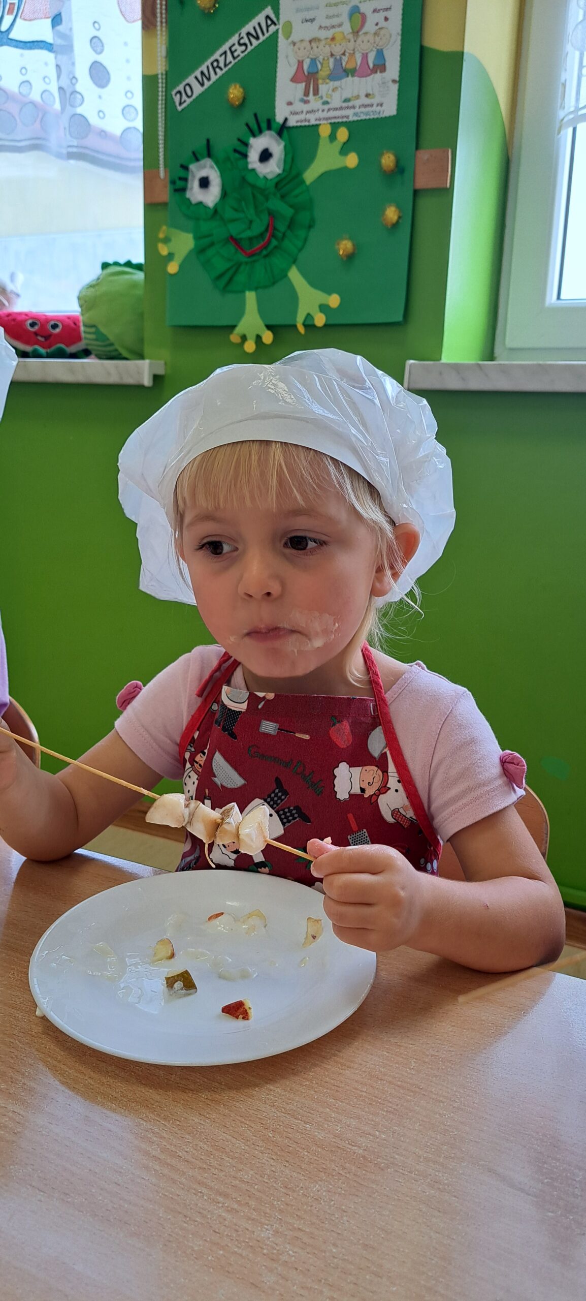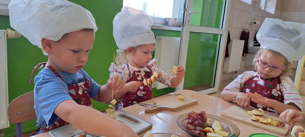 Owocowe szaszłyki w gr. IV zgodnie z projektem „Skąd się biorą produkty ekologiczne?”