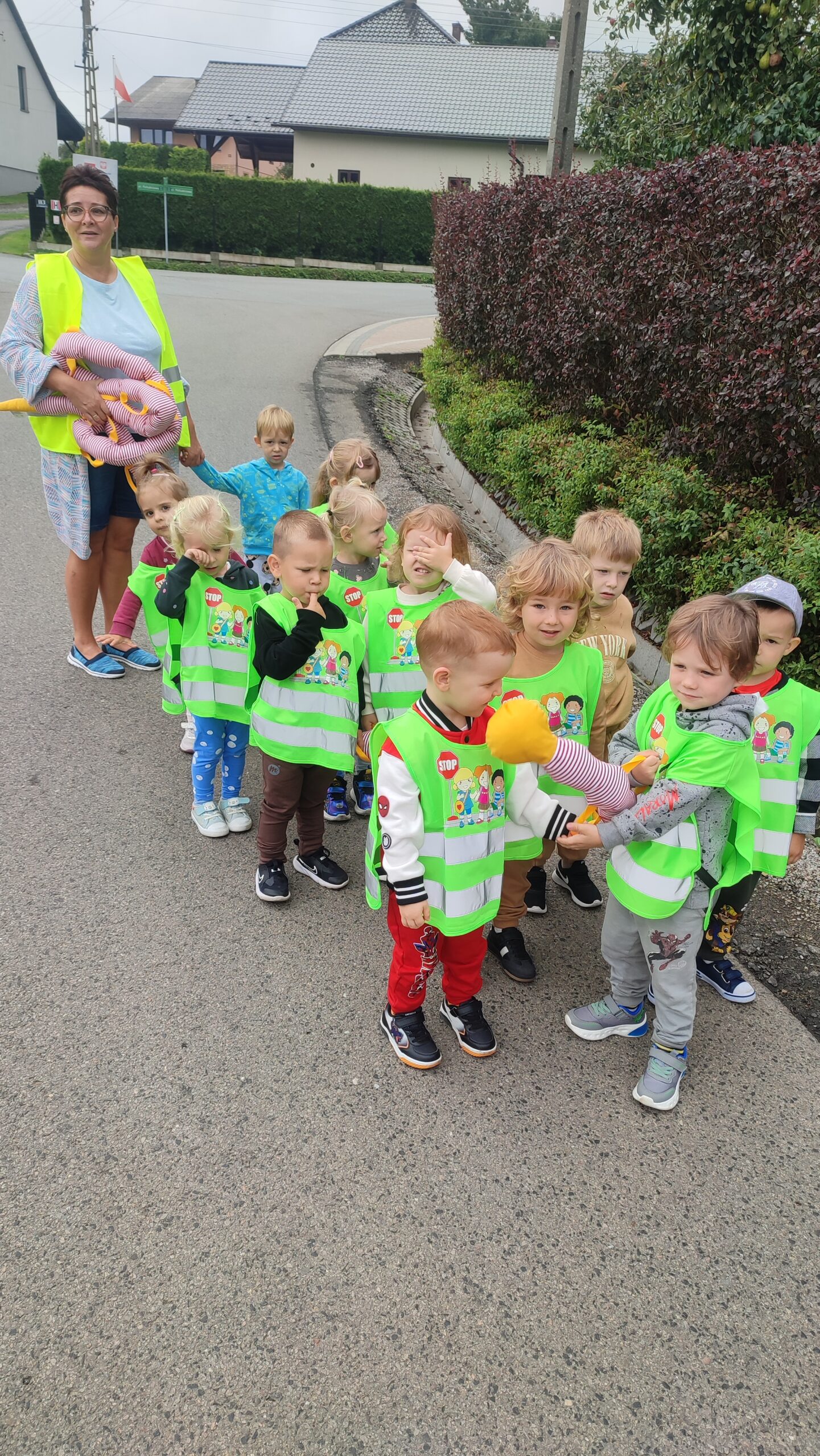 Piękna pogoda zachęca do spacerów, dlatego wybraliśmy się na nasz pierwszy przedszkolny spacer, który połączyliśmy z nauką przechodzenia przez drogę. Na koniec – wesołe zabawy na boisku.