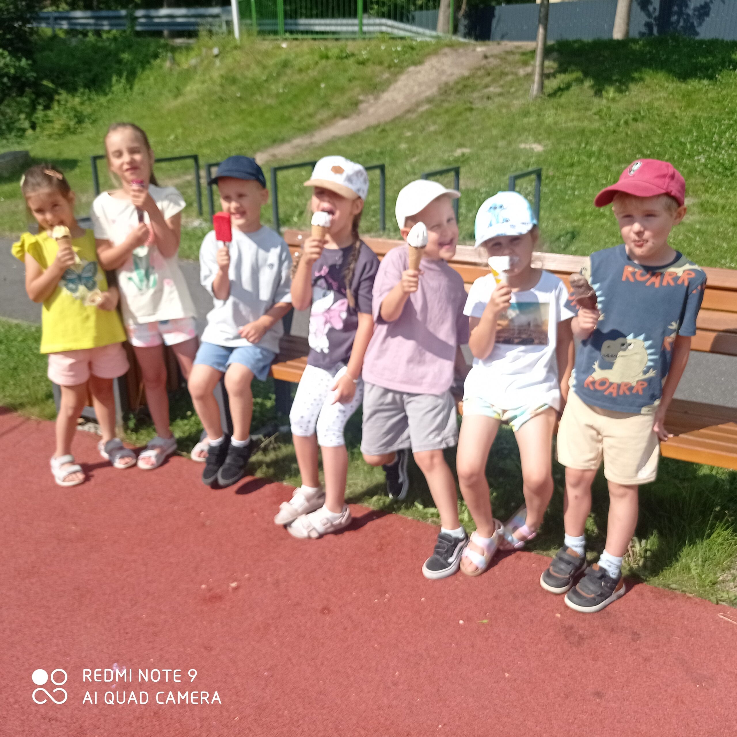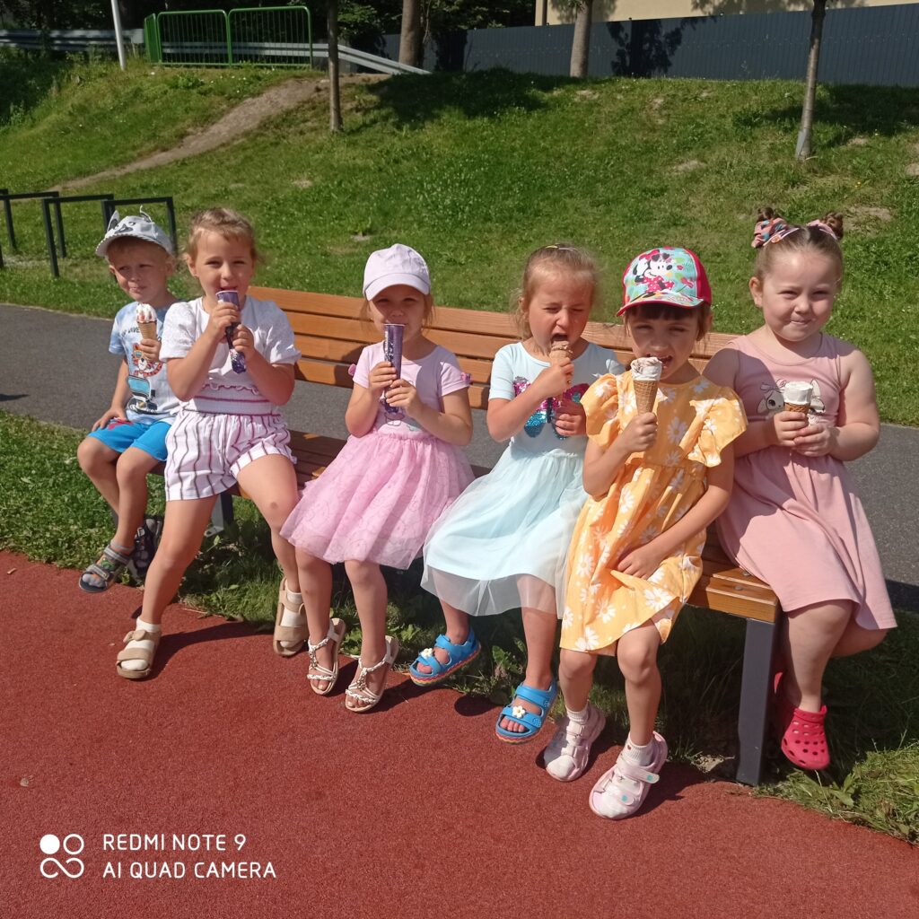 Za odniesiony sukces cala grupa wybrała się na smaczne lody.