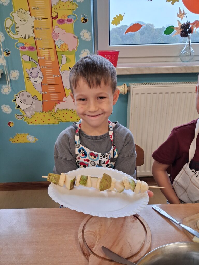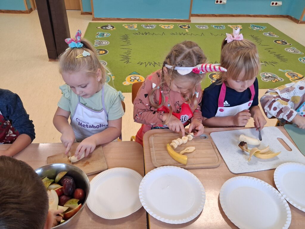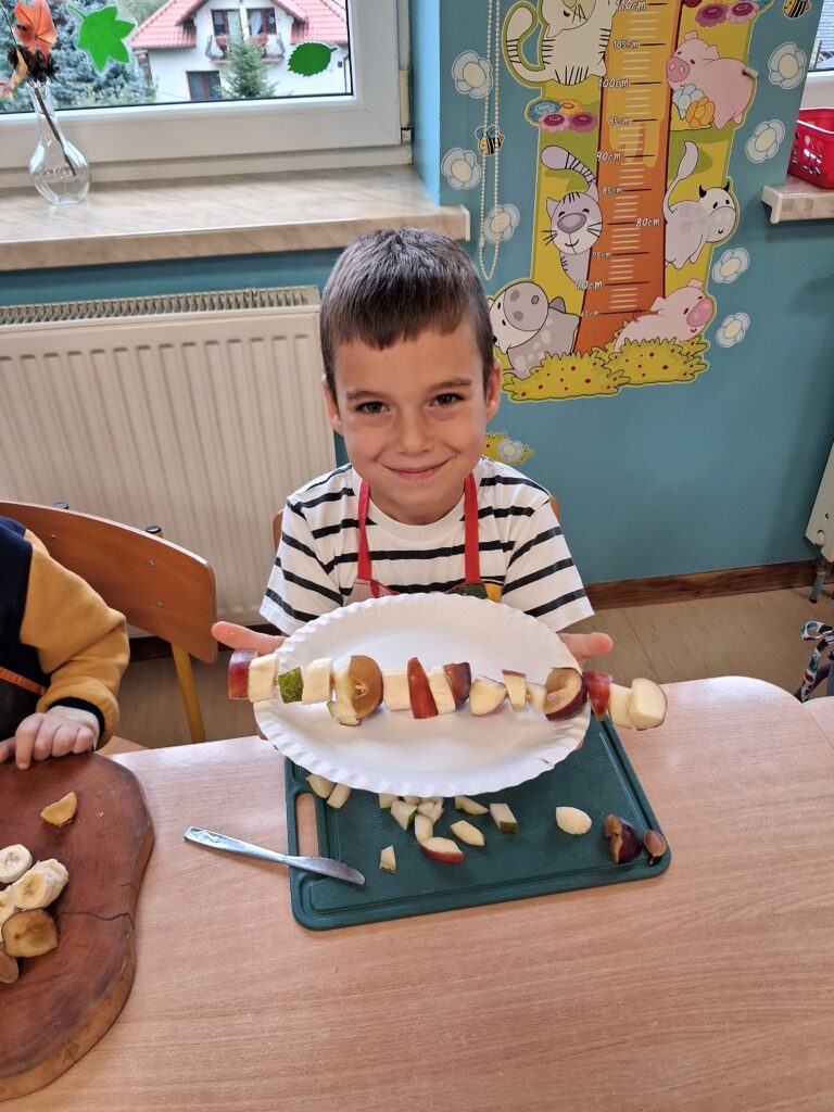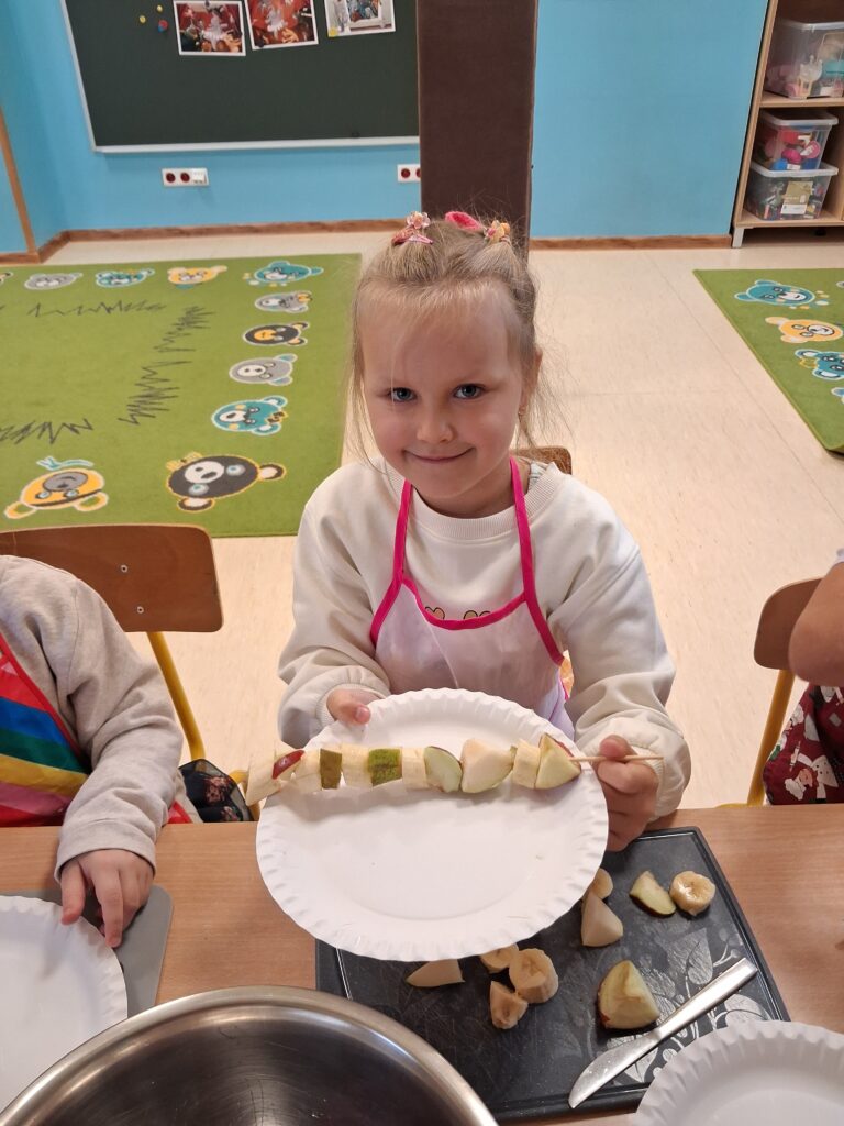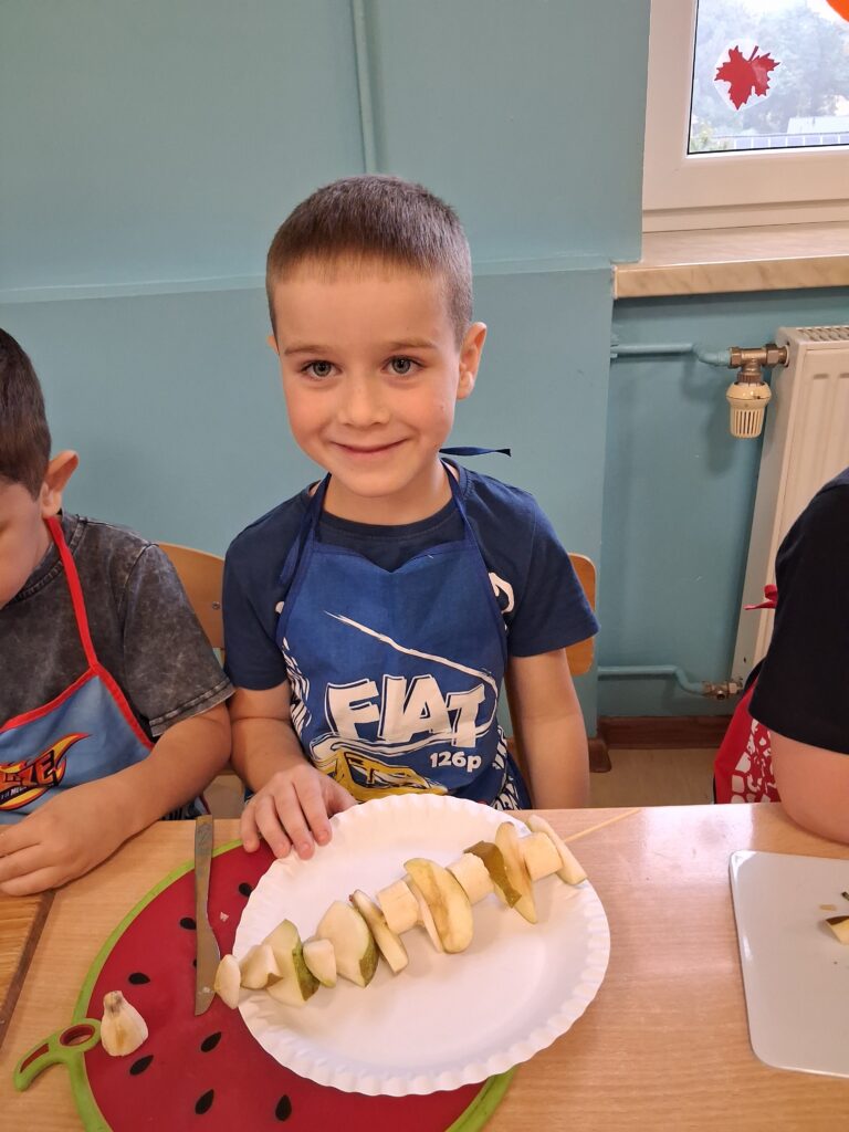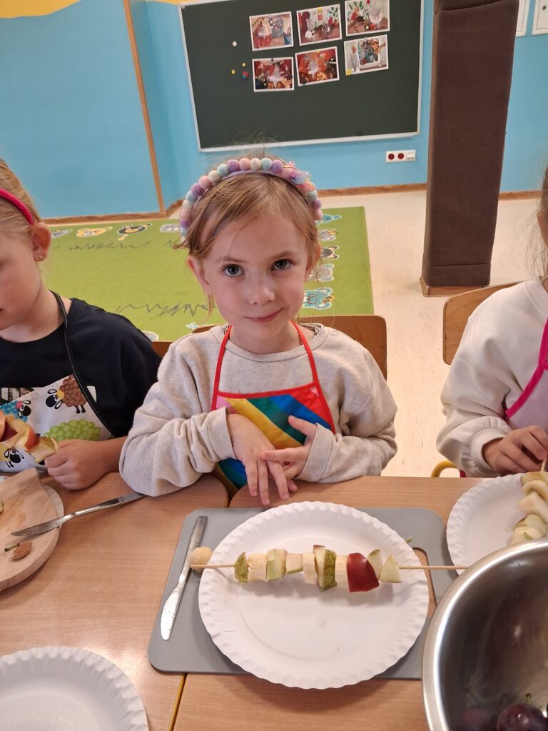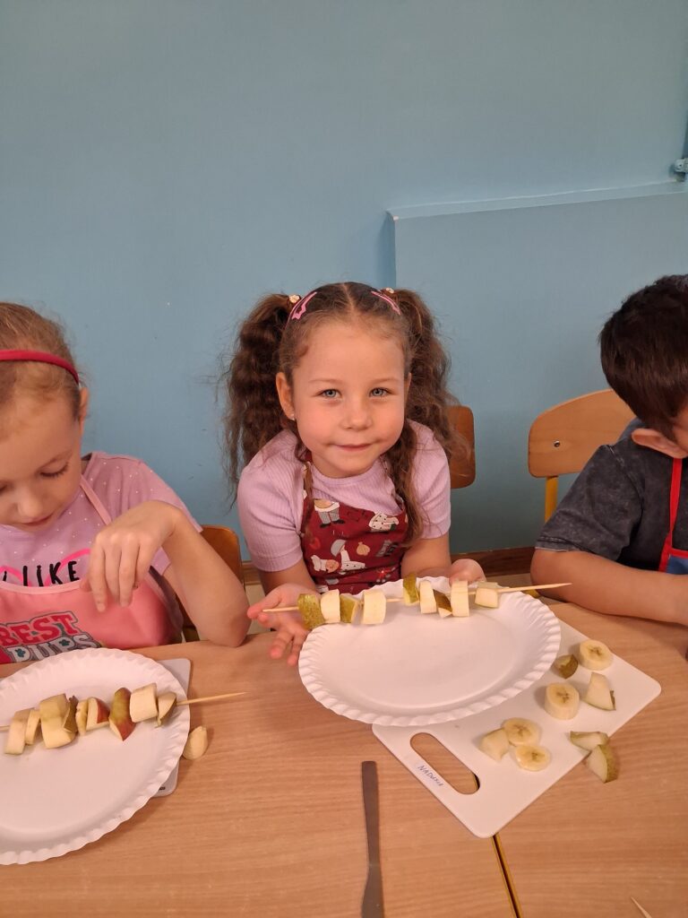 „Skąd sie biorą produkty ekologiczne?” pogadanka połączona z wykonaniem owocowych smakołyków – gr. VII
