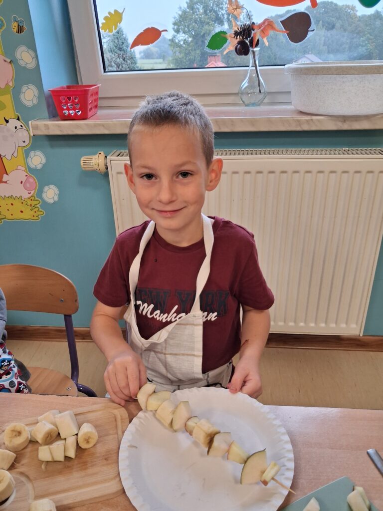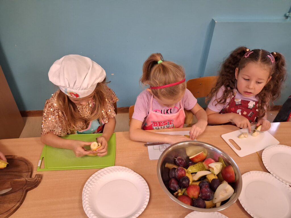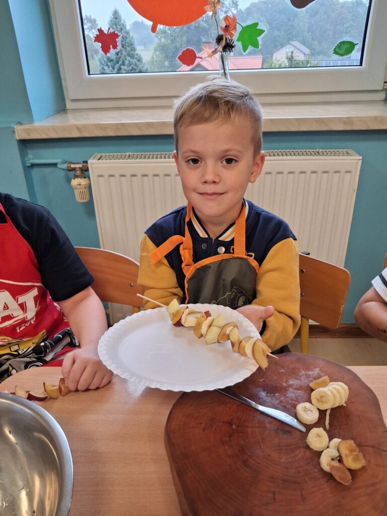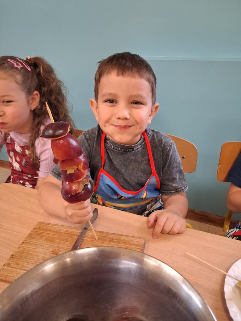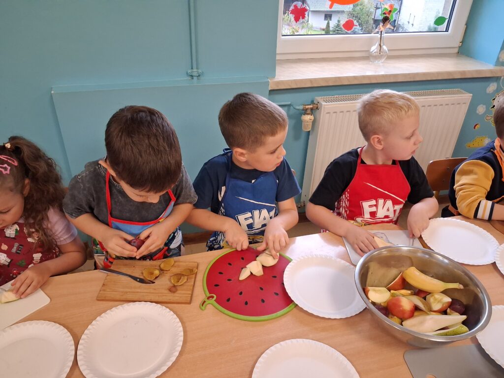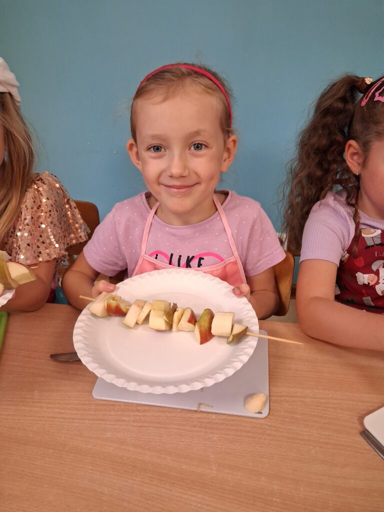 „Skąd sie biorą produkty ekologiczne?” pogadanka połączona z wykonaniem owocowych smakołyków – gr. VII