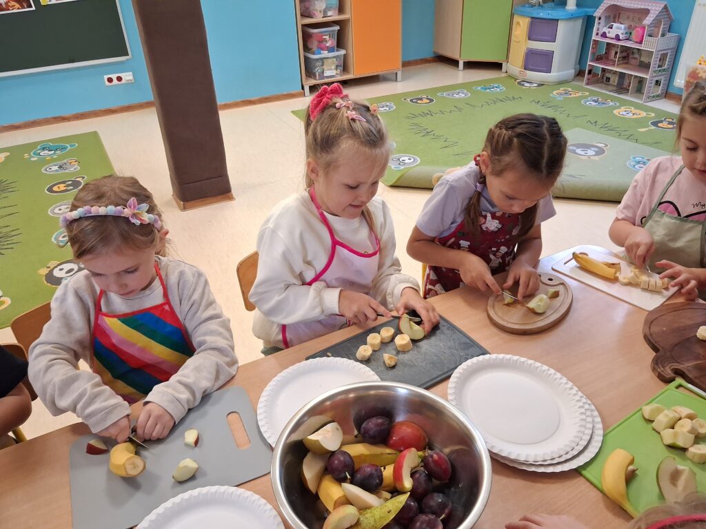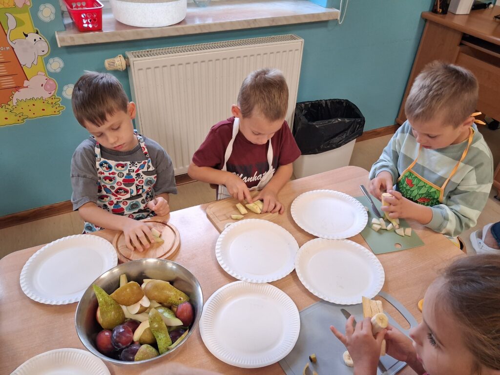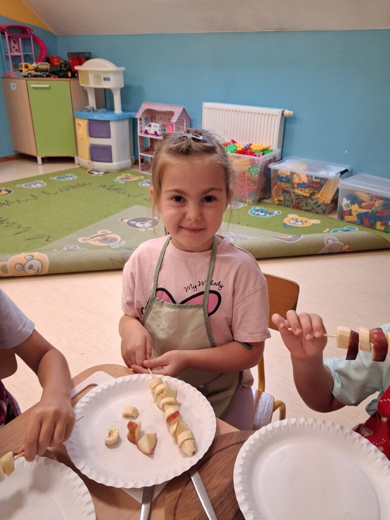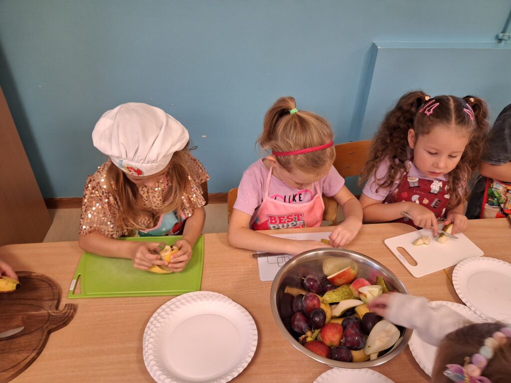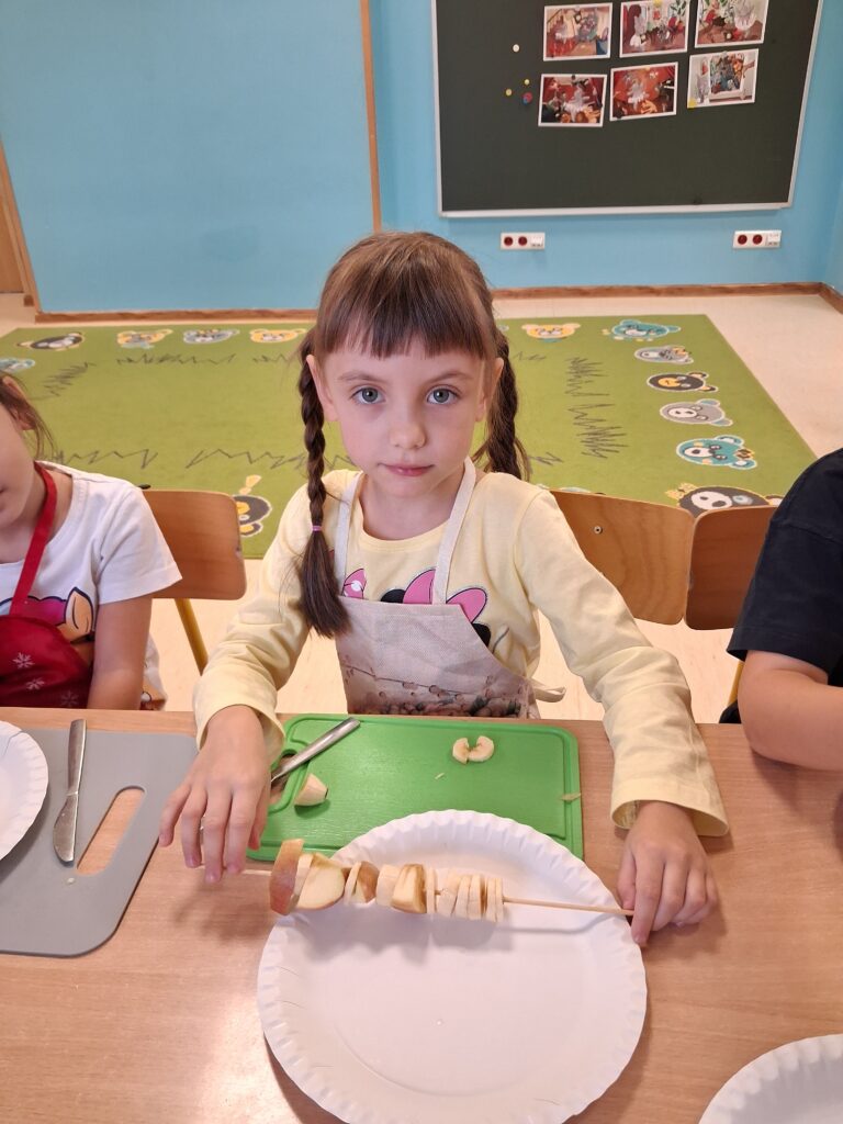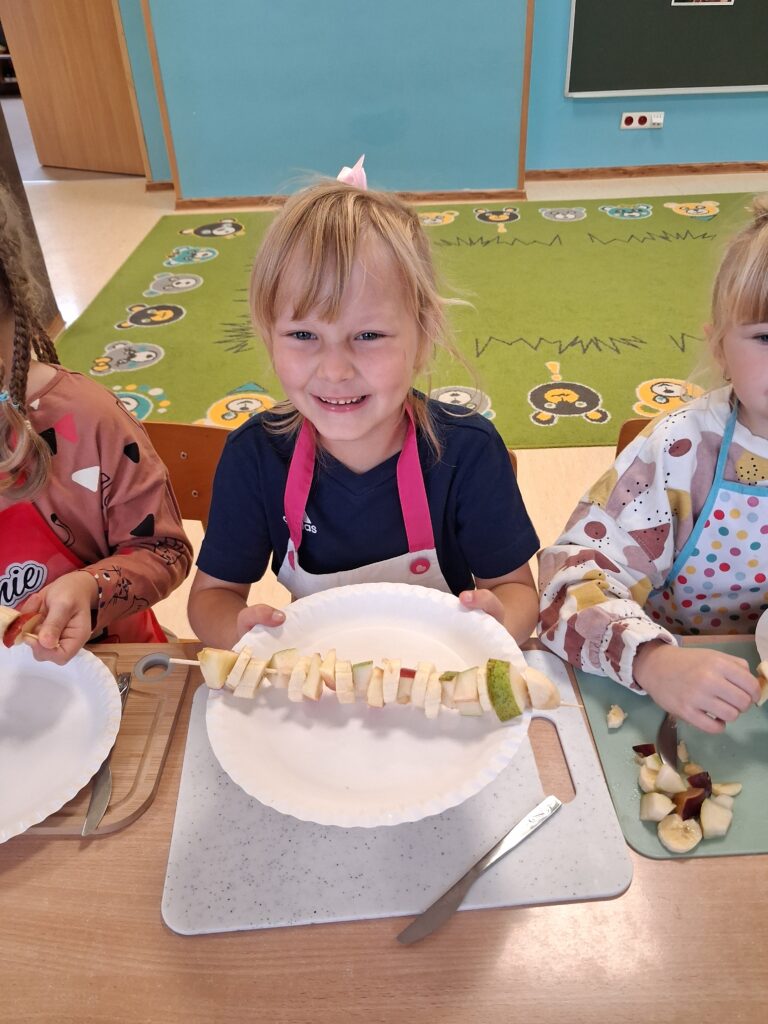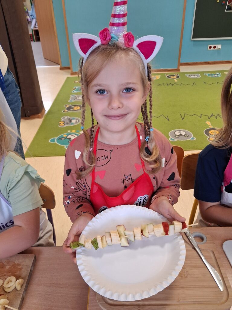 „Skąd sie biorą produkty ekologiczne?” pogadanka połączona z wykonaniem owocowych smakołyków – gr. VII