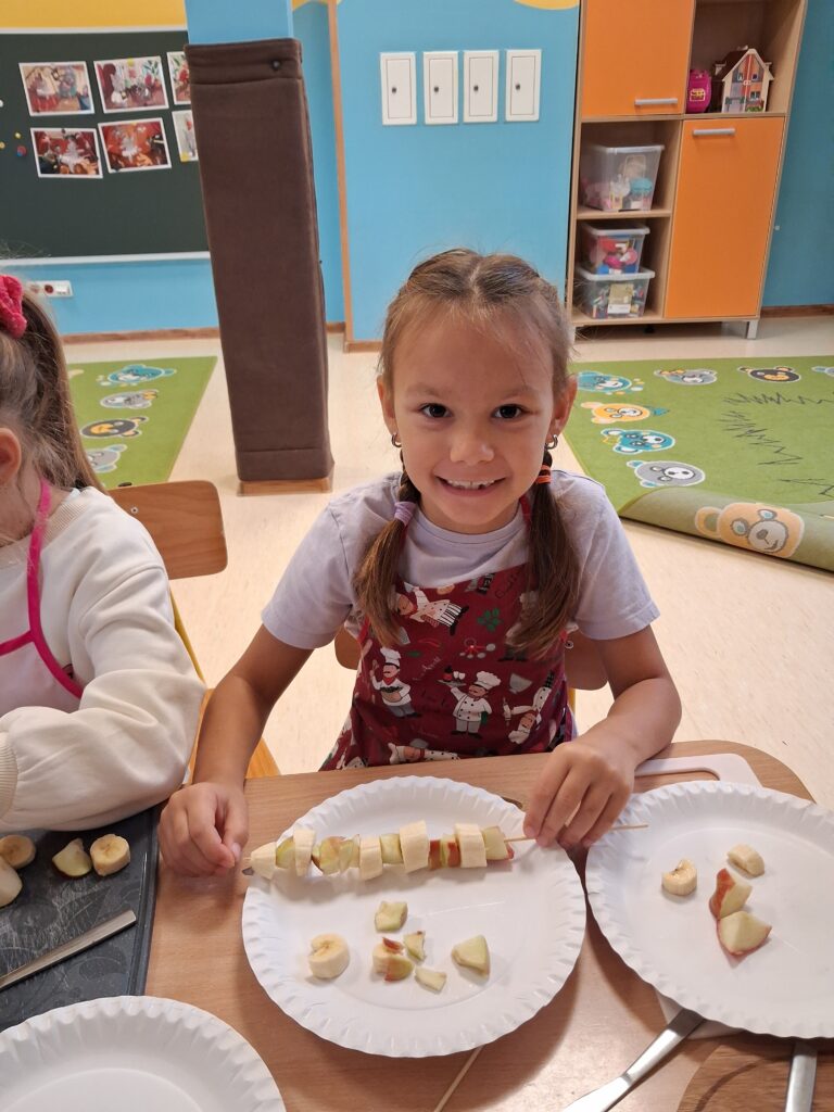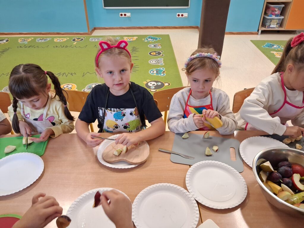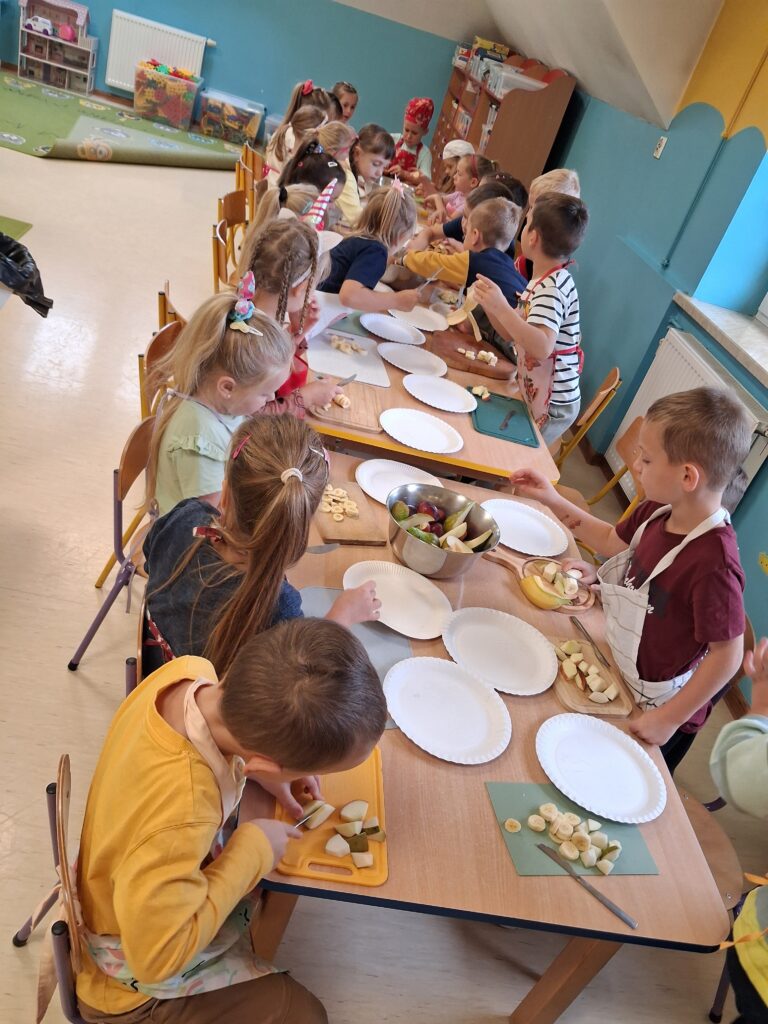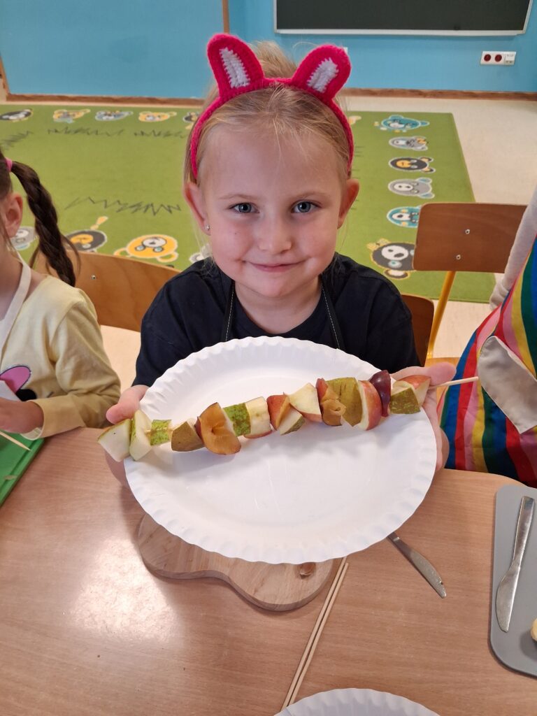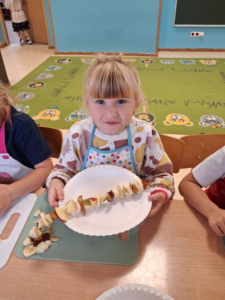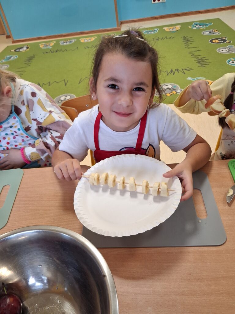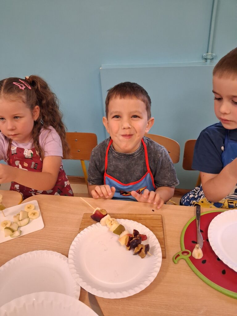 „Skąd sie biorą produkty ekologiczne?” pogadanka połączona z wykonaniem owocowych smakołyków – gr. VII