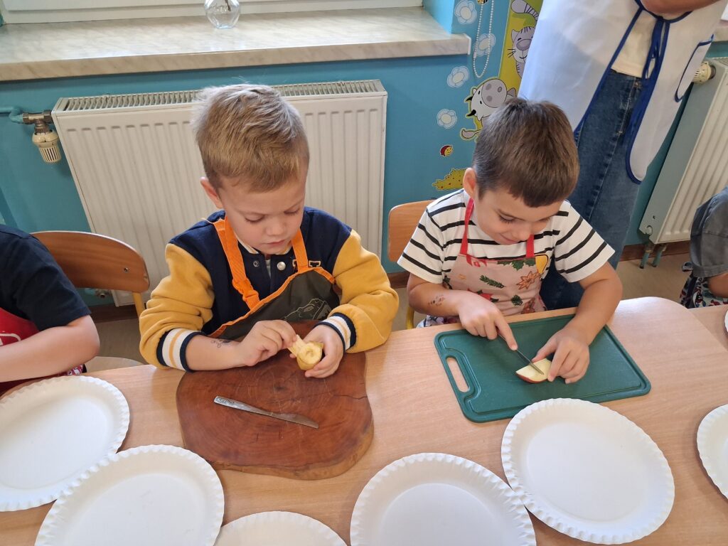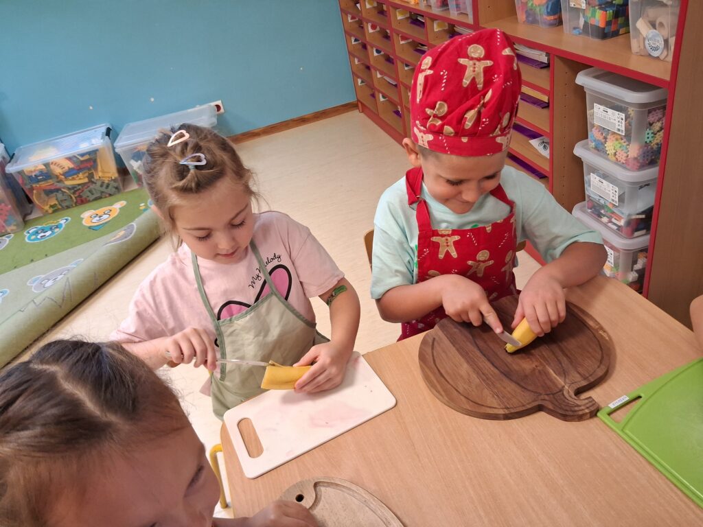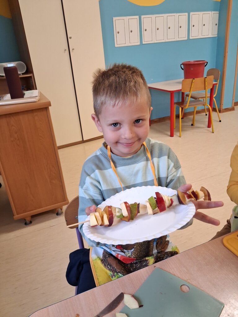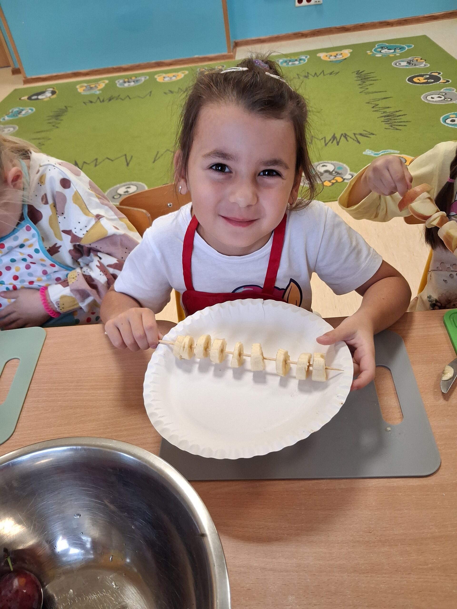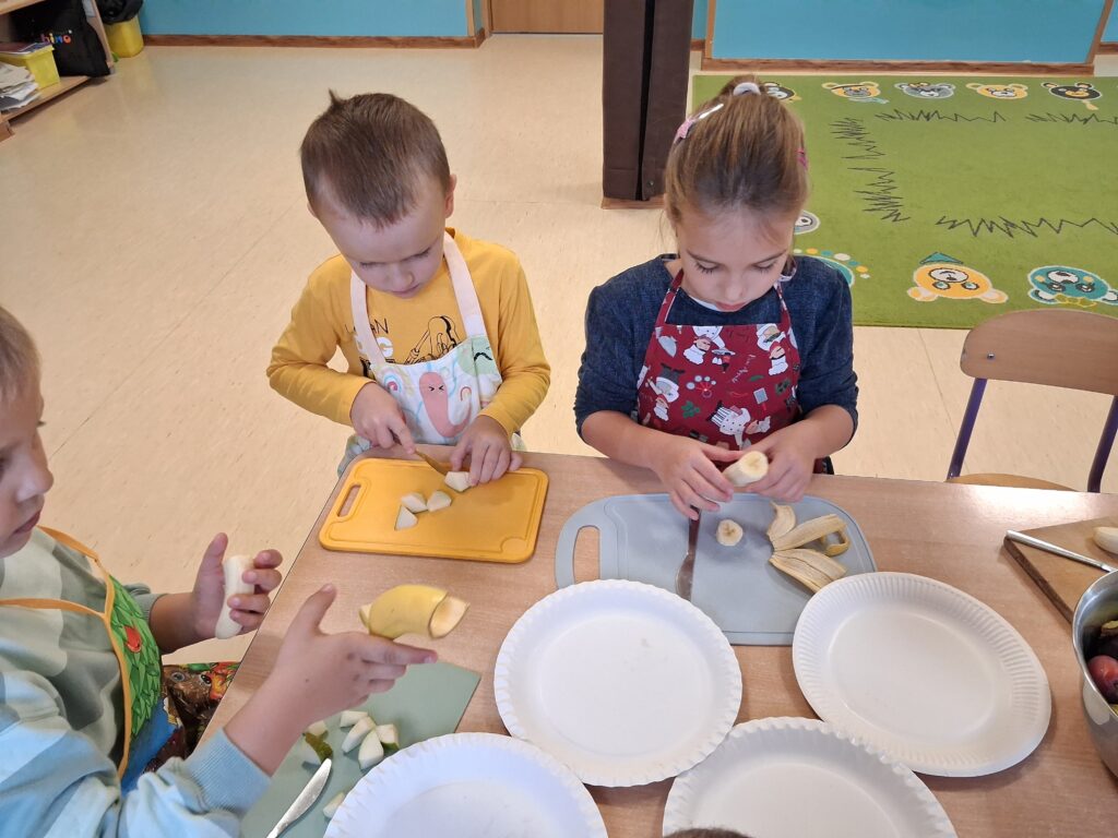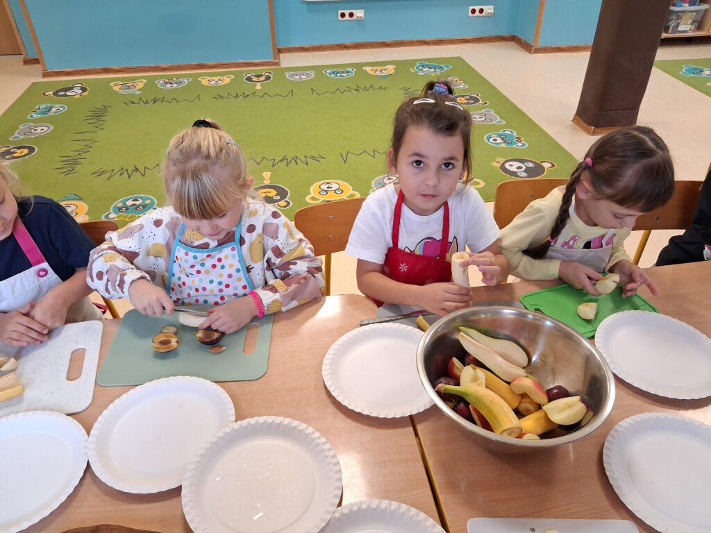 „Skąd sie biorą produkty ekologiczne?” pogadanka połączona z wykonaniem owocowych smakołyków – gr. VII