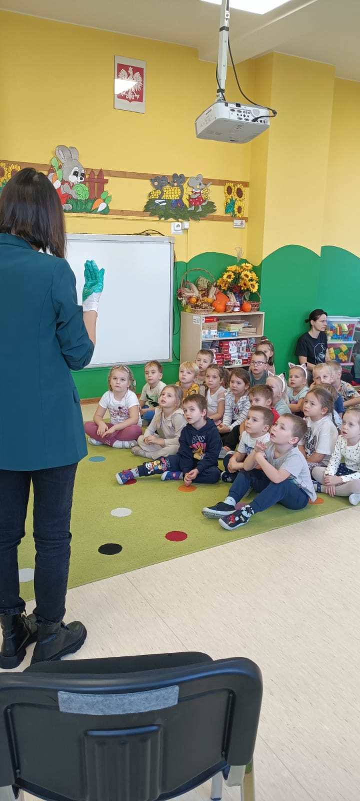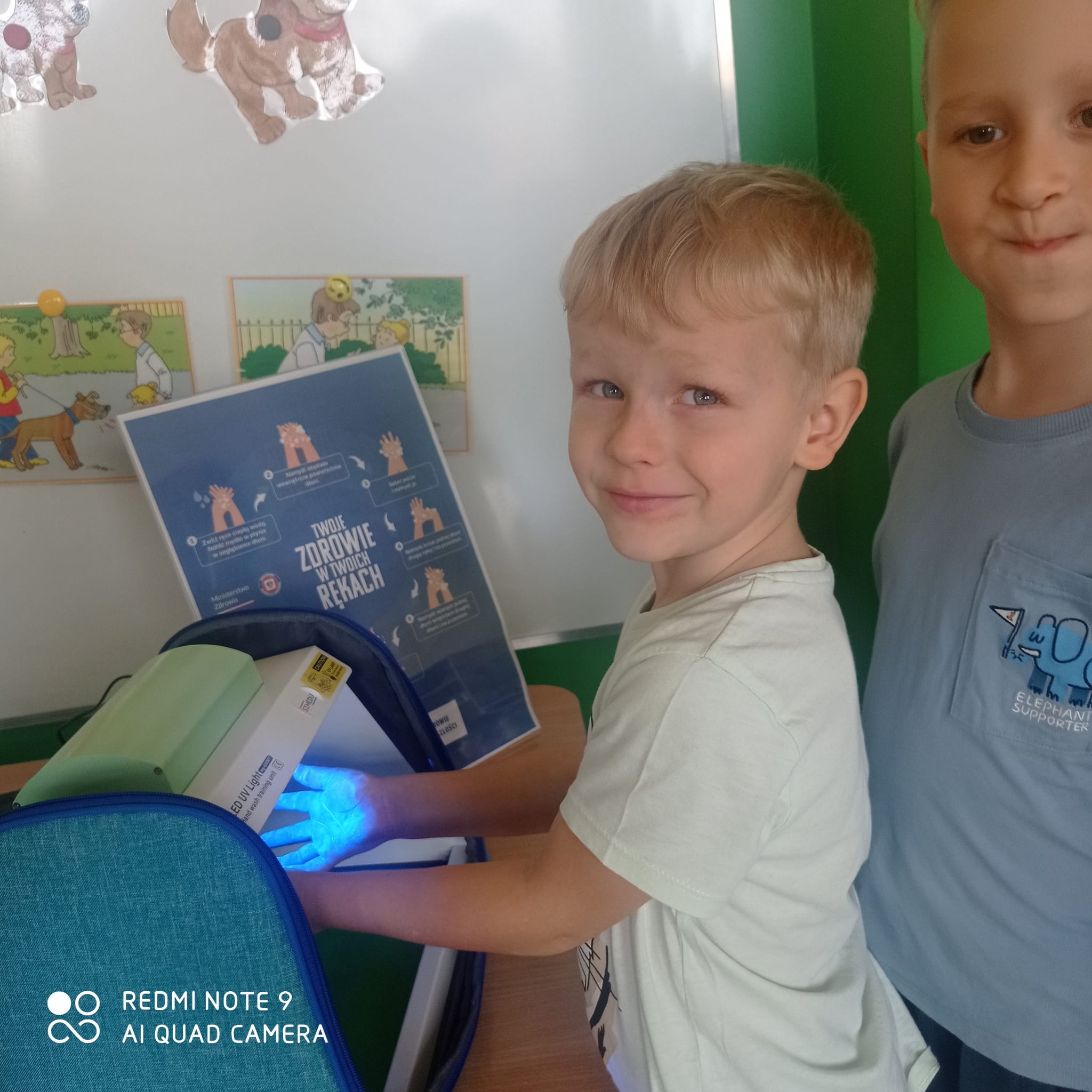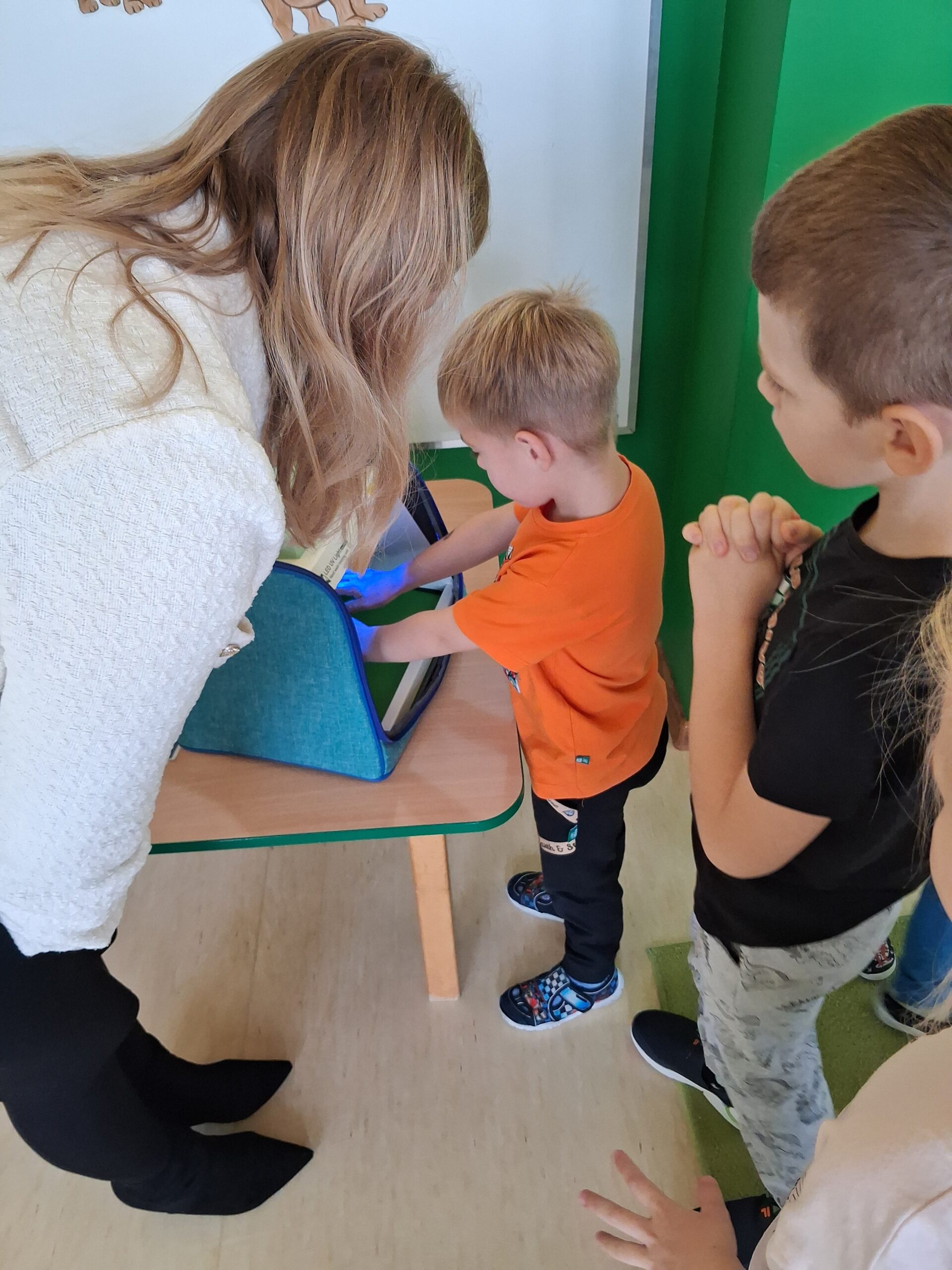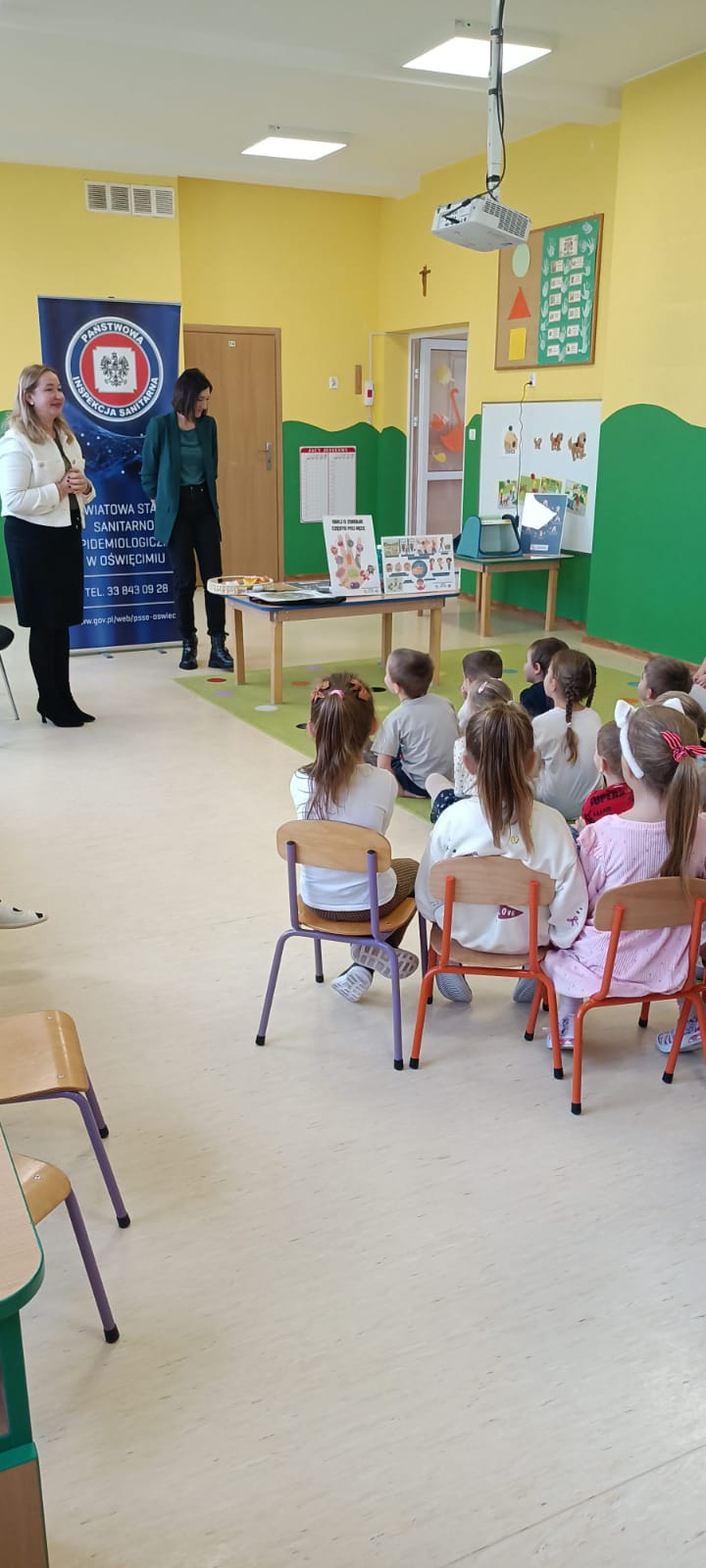 14 listopada dzieci z grup starszych uczestniczyły w zajęciach edukacyjnych przeprowadzonych przez Panie z sanepidu dotyczących higieny rąk oraz zdrowego żywienia. Dzieci miały okazję przypomnieć sobie jak prawidłowo myć ręce oraz sprawdzić- pod specjalną lampą czy zrobiły to dokładnie. To doświadczenie uświadomiło nam, jak starannie trzeba myć ręce, żeby usunąć z nich bakterie. Podczas spotkania, dzieci dowiedziały się także co to jest „Talerz zdrowego żywienia”, dlaczego należy się zdrowo odżywiać, spożywać owoce, warzywa, pełnoziarniste produkty zbożowe oraz białko i tłuszcze. Serdecznie dziękujemy za ciekawe i pouczające spotkanie.