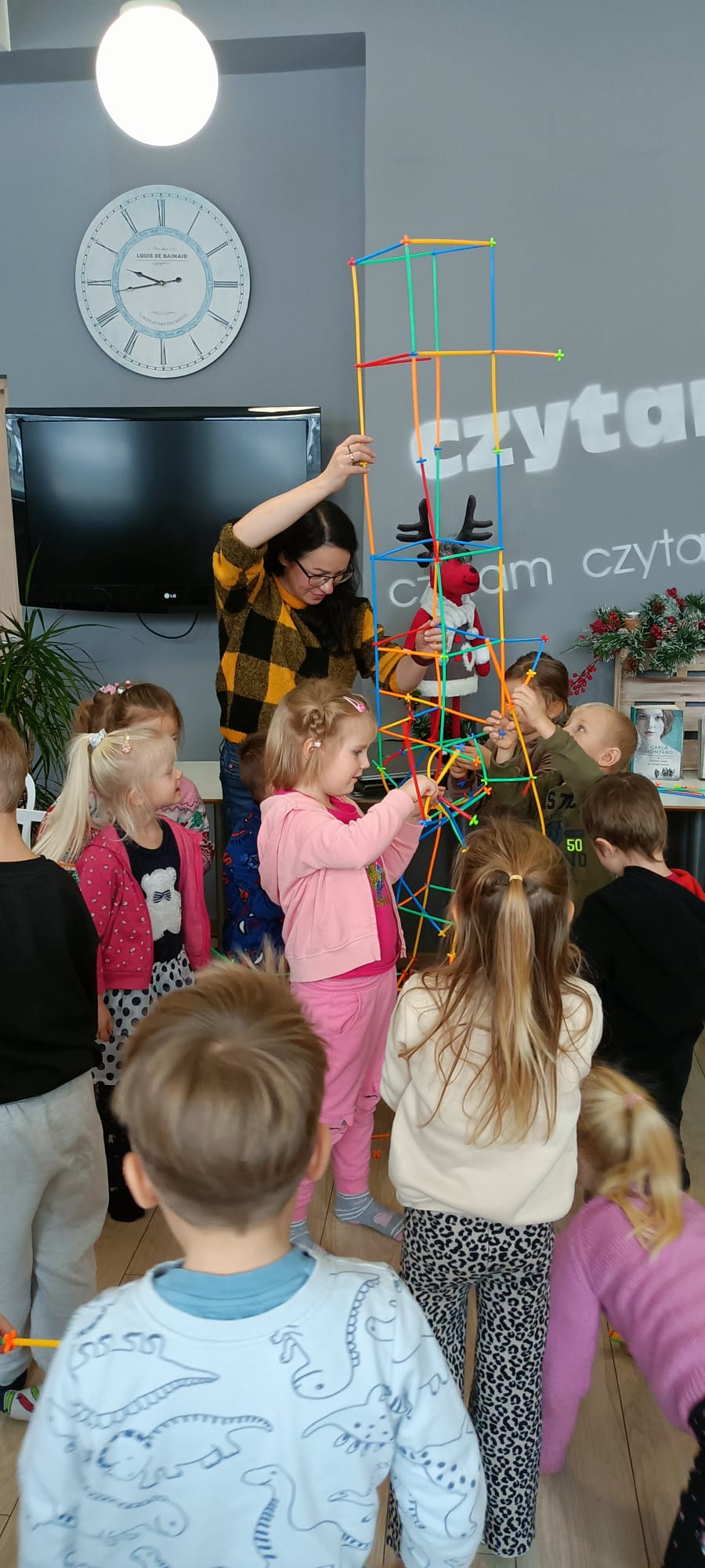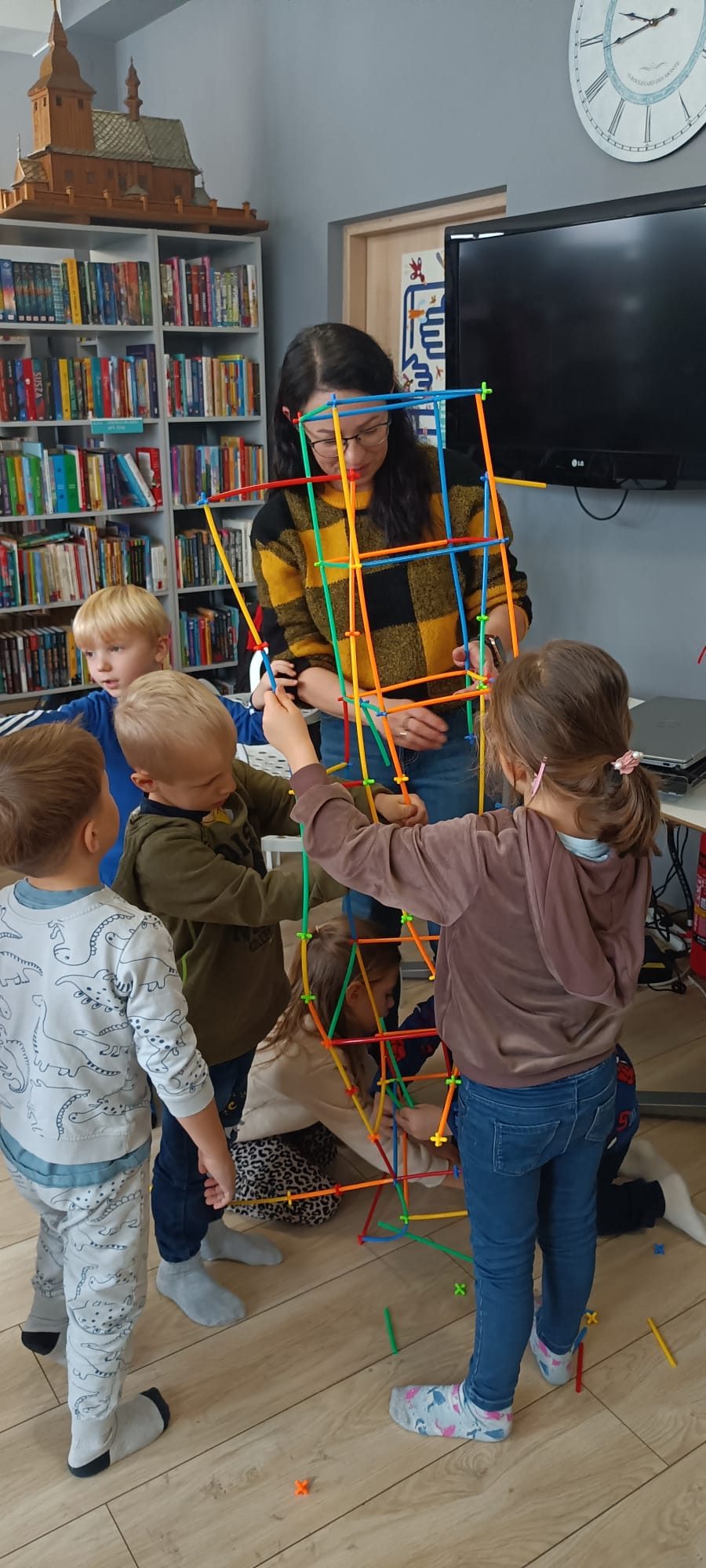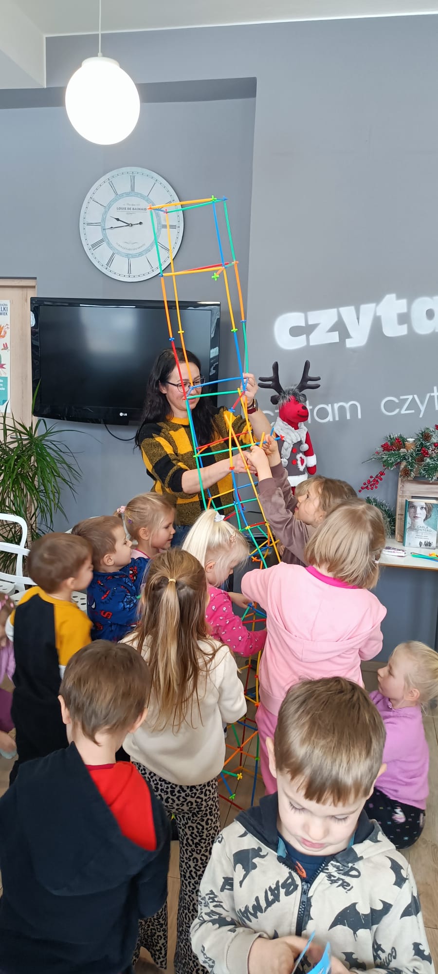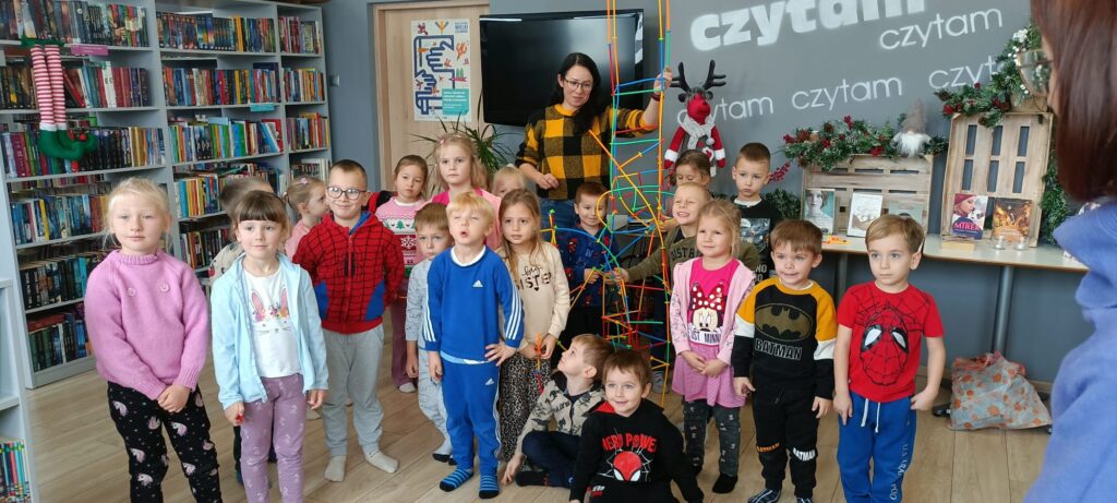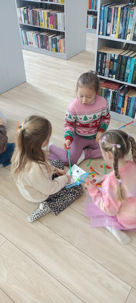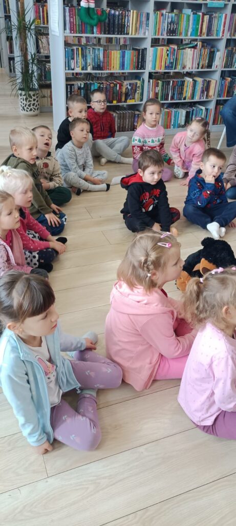 28 listopada grupa V udała się do Biblioteki Publicznej w Polance Wielkiej. Dzieci wysłuchały bajkę pt. „Miś Tuliś bawi się w chowanego” oraz samodzielnie wykonały pracę plastyczną. Później przedszkolaki bawiły się w zabawę „ciepło- zimno” z misiem oraz wspólnie wybudowały najwyższą wieżę z rurek. Bardzo dziękujemy Pani Madzi- bibliotekarce za bardzo ciekawe zajęcia.