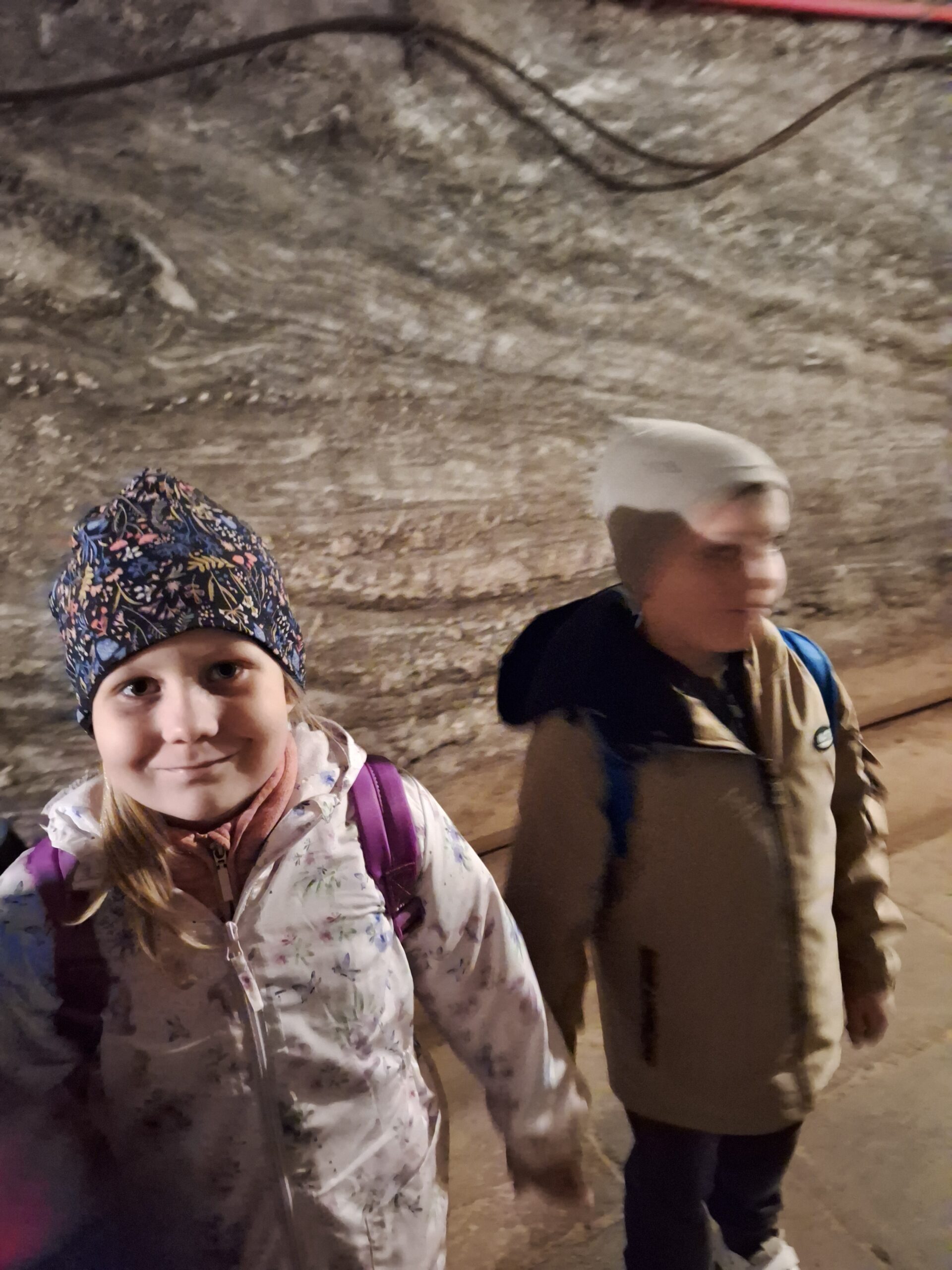 Dnia 15.05.2025 r. starszaki były na wycieczce w najstarszej w Polsce Kopalni Soli Bochnia. Przedszkolaki zwiedzanie kopalni rozpoczęły od zjazdu windą szybem pod ziemię na głębokość 212 metrów. Tam z Panią przewodnik przebyły trasę – ,,Królestwo Skarbnika’’. Już na początku była przejażdżka kolejką, następnie przejście solnymi korytarzami, multimedialne pokazy i słuchowiska, które ukazały dzieciom techniki wydobywcze, zwyczaje górnicze oraz inne aspekty z życia kopalni. W trakcie zwiedzania dzieci zapoznały się z historią tego niezwykłego miejsca – dowiedziały się, że tak powszechna dzisiaj sól była kiedyś „białym złotem”, odwiedziły stajnię, gdzie odpoczywał ostatni koń pracujący w kopalni – Kuba. Na koniec trasy wycieczkowej pokonaliśmy 307 stopni w dół do komory „Ważyn”. Pobyt w kopalni był dla wszystkich dużym przeżyciem oraz interesującą i pełną radości przygodą.