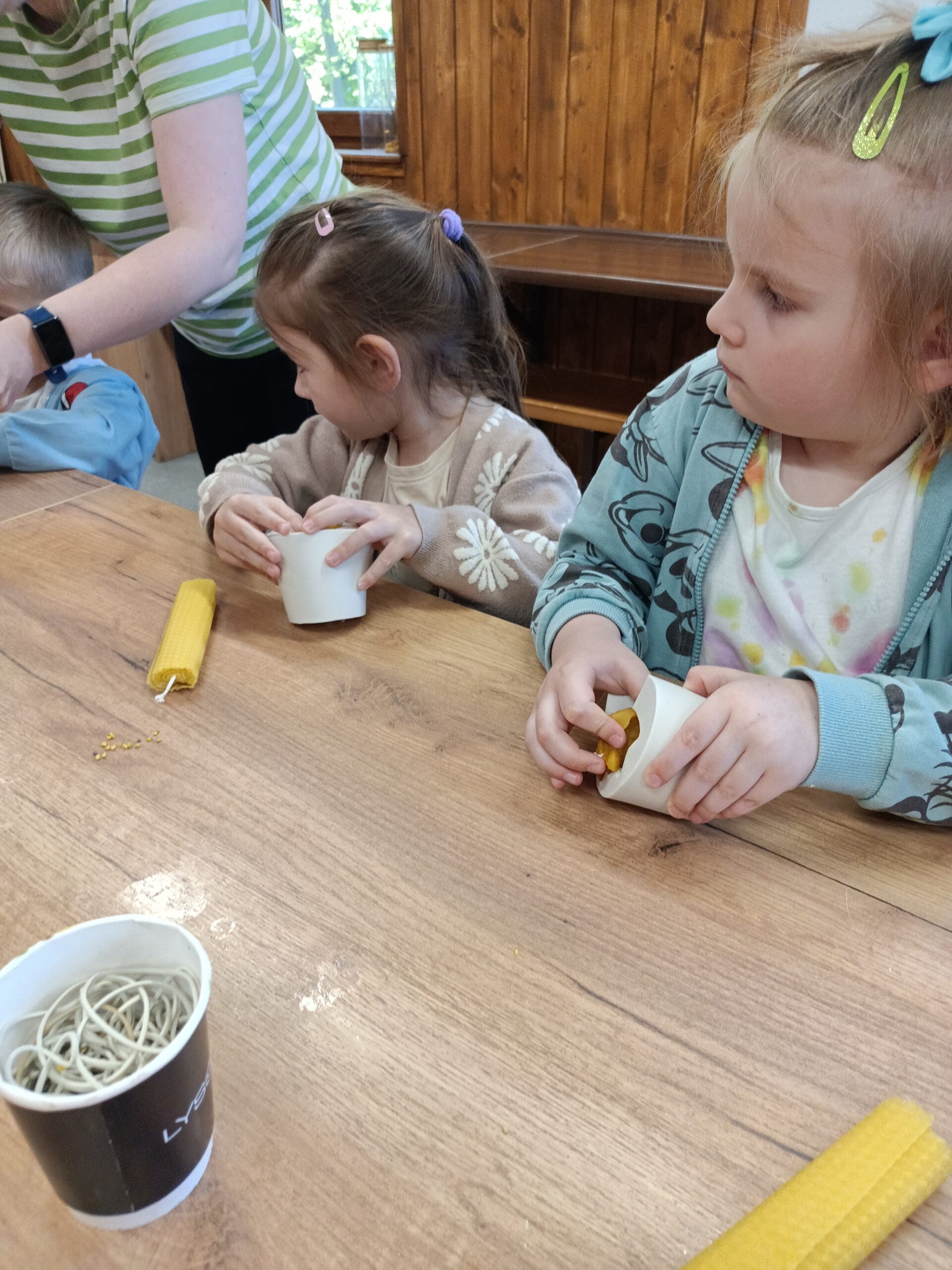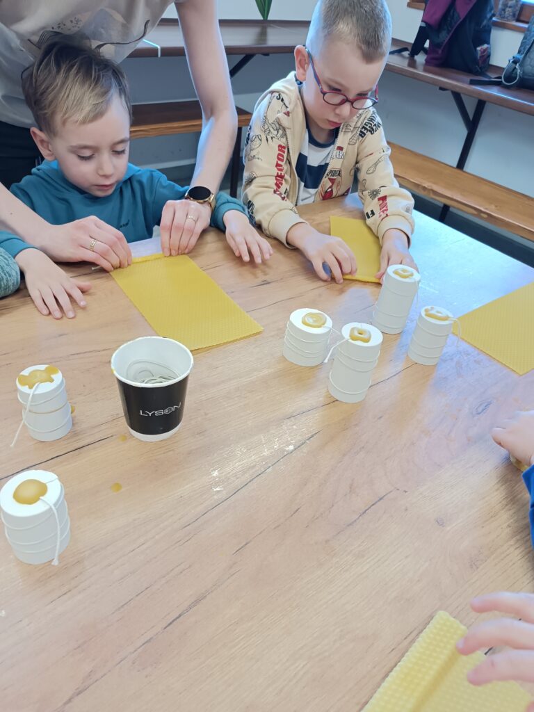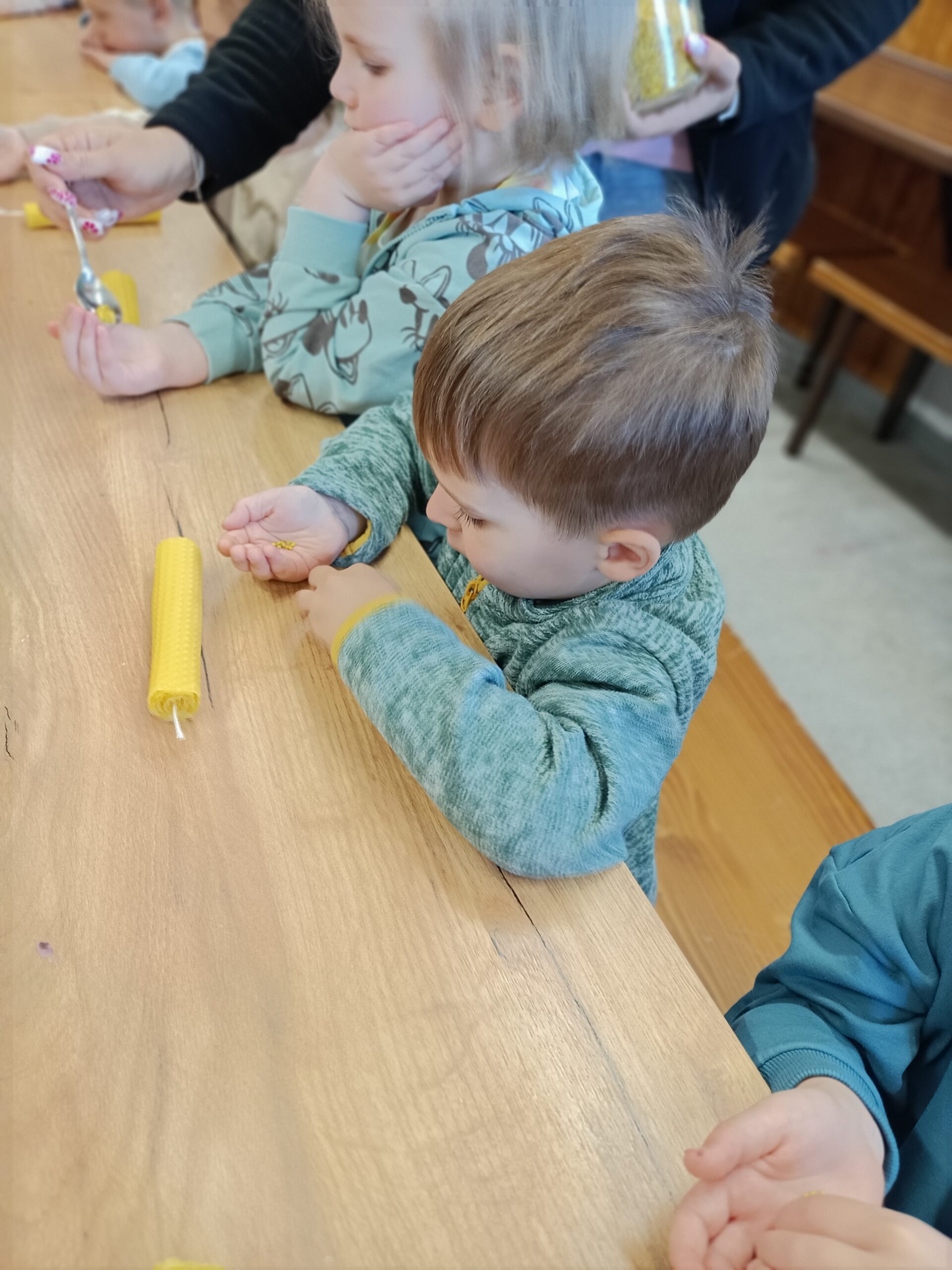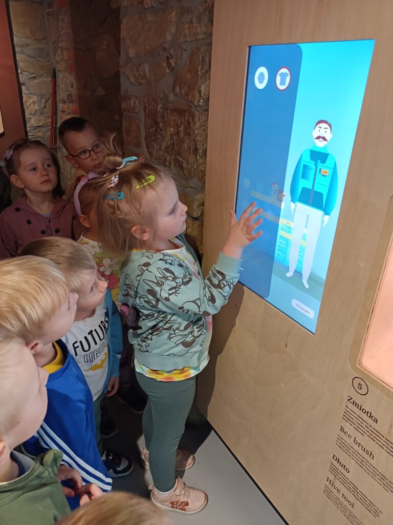 Przedszkolaki z grupy IV wyjechały na wycieczkę do „Apilandii”, aby odkryć największe tajemnice świata pszczół. Podczas zwiedzania dzieci dowiedziały się m.in. kto mieszka w ulu, jak wygląda życie pszczół, jakie dobrodziejstwa zawdzięczamy pszczołom oraz jak wygląda praca pszczelarza. Dzieci uczestniczyły także w warsztatach pszczelarskich i wykonały świecę z wosku lanego oraz z węzy pszczelej, degustowały produkty pszczele- pyłek i miód oraz obserwowały pszczoły w przeszklonym ulu- udało nam się nawet odnaleźć królową.